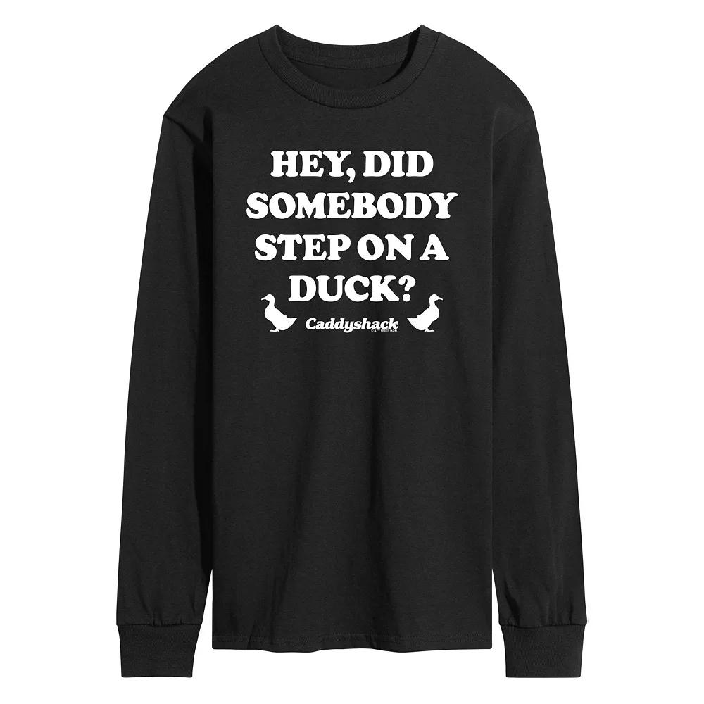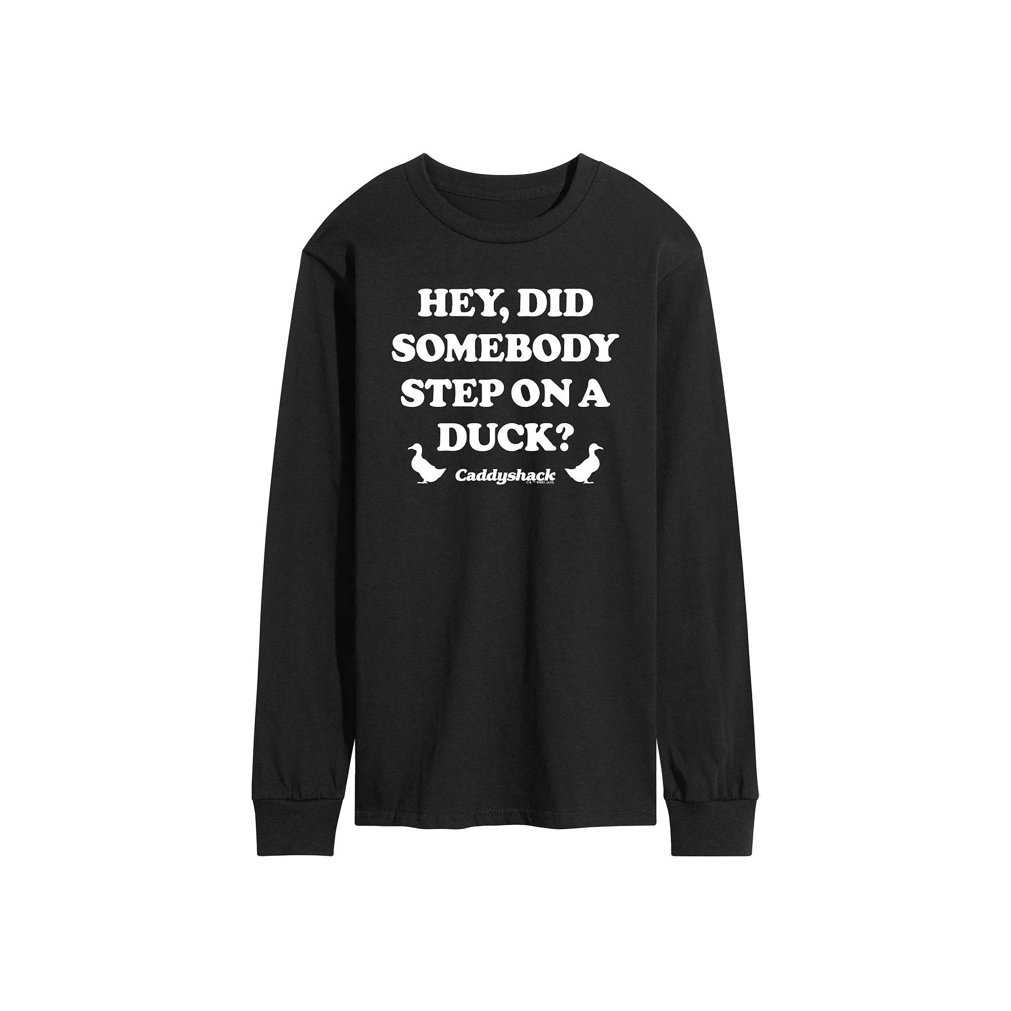 Vintage vibe. Youll be a blockbuster hit wearing this mens Caddy Shack Step On A Duck Long Sleeve Graphic Tee. FEATURES Crewneck Long sleeveFABRIC & CARE Solid colors: cotton; Heather colors: cotton, polyester Machine wash Imported Color: Black. Gender: male. Age Group: adult. Material: Polyester|Cotton.