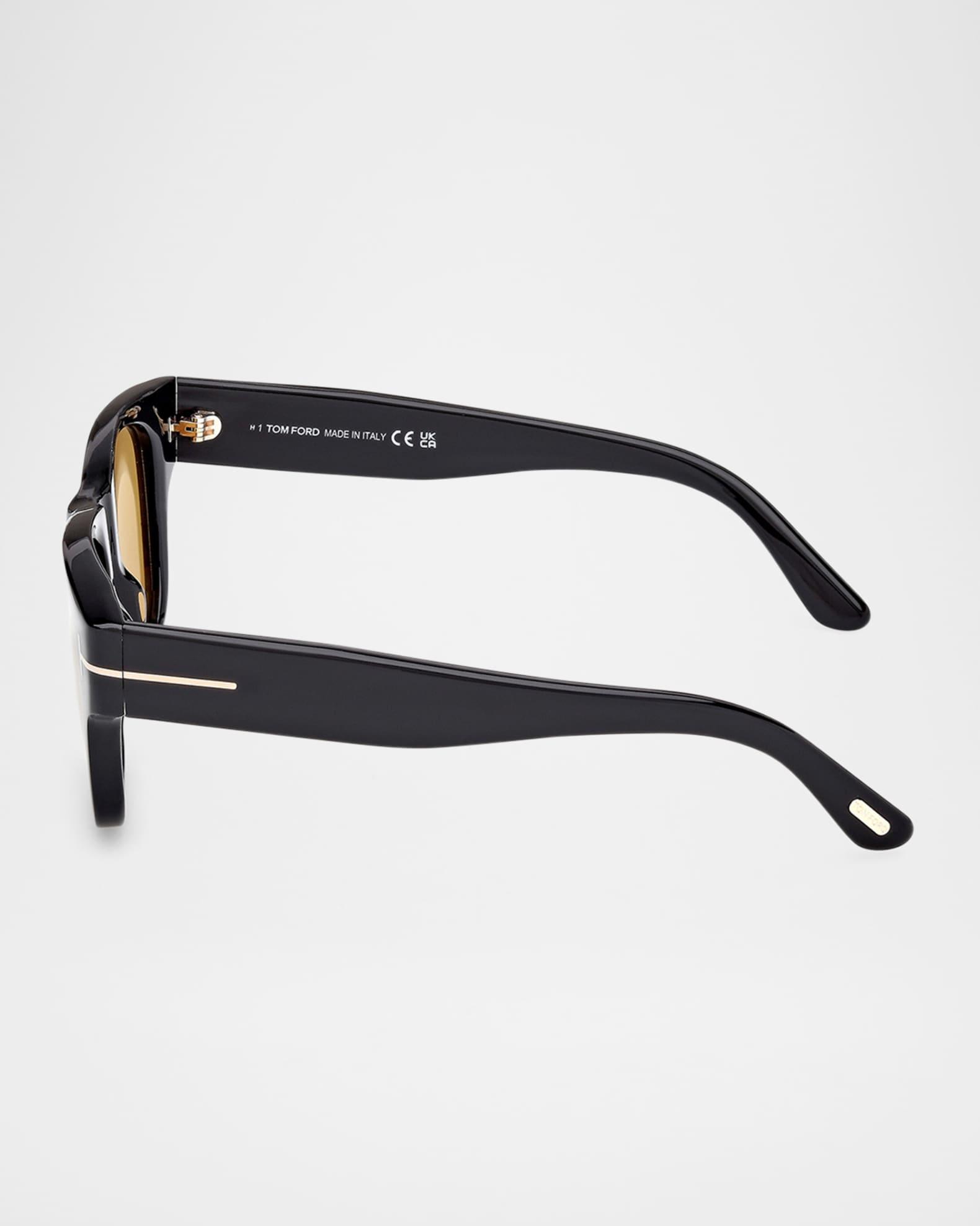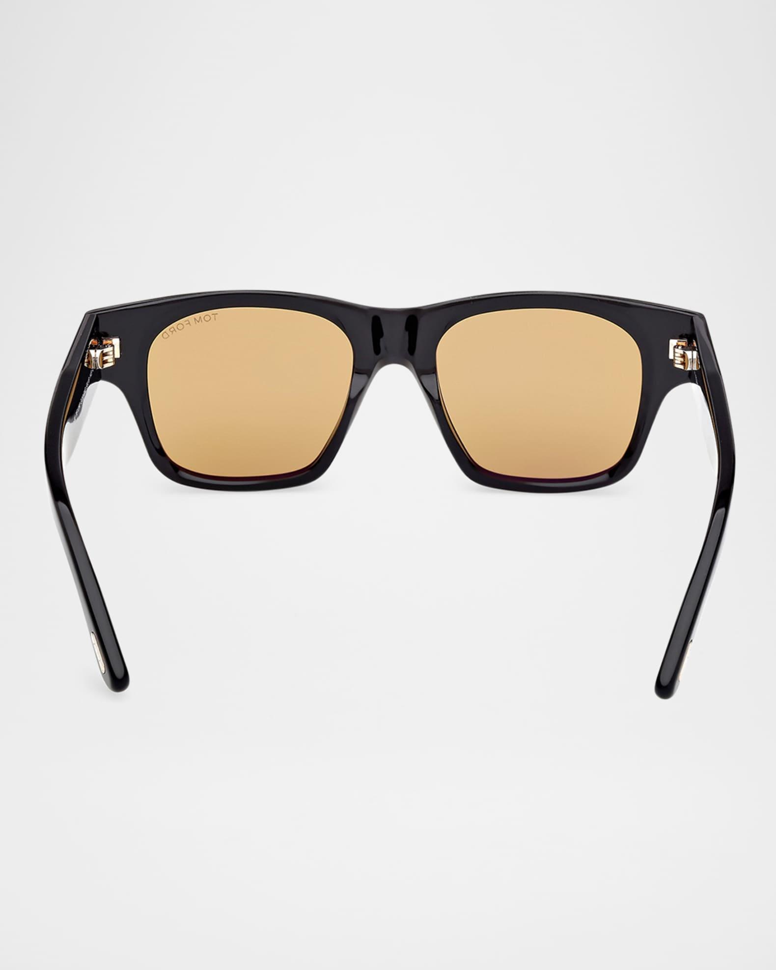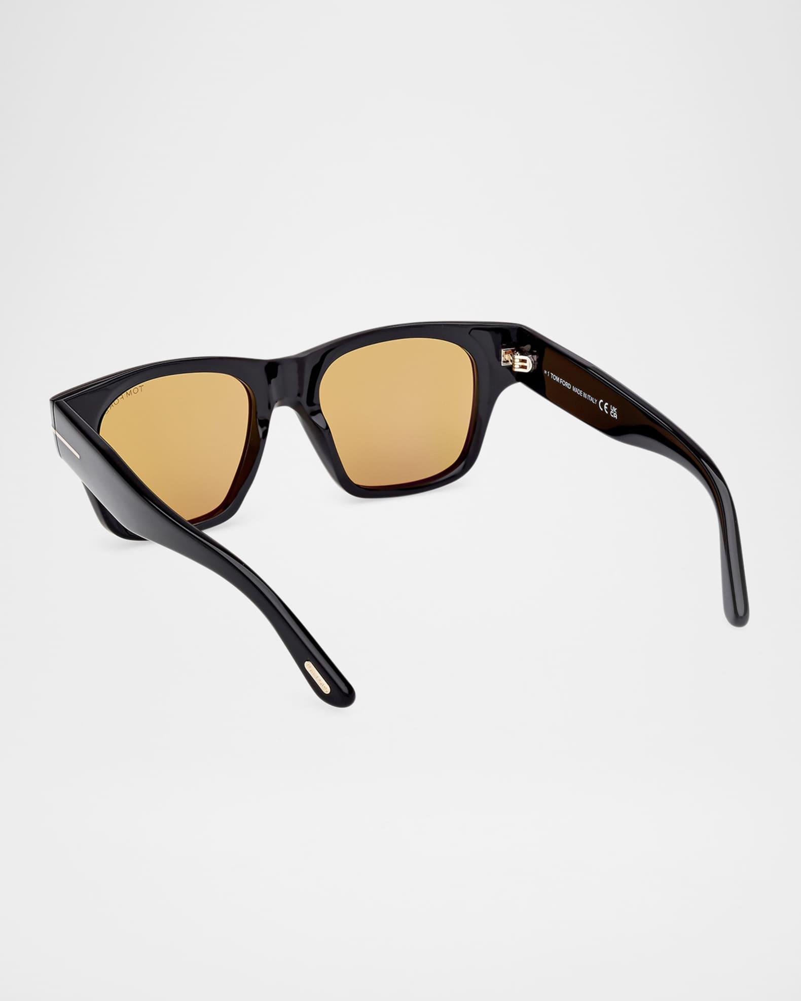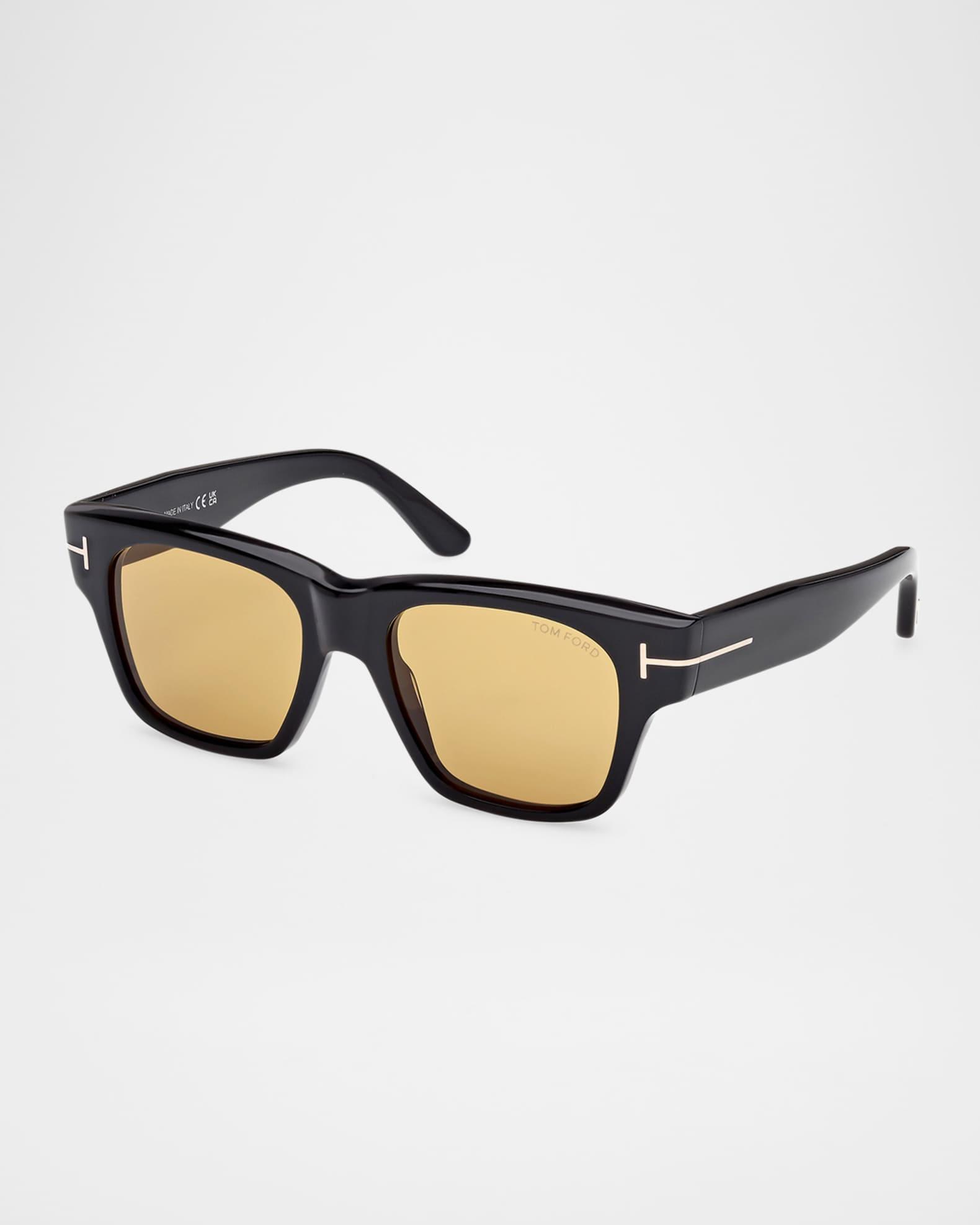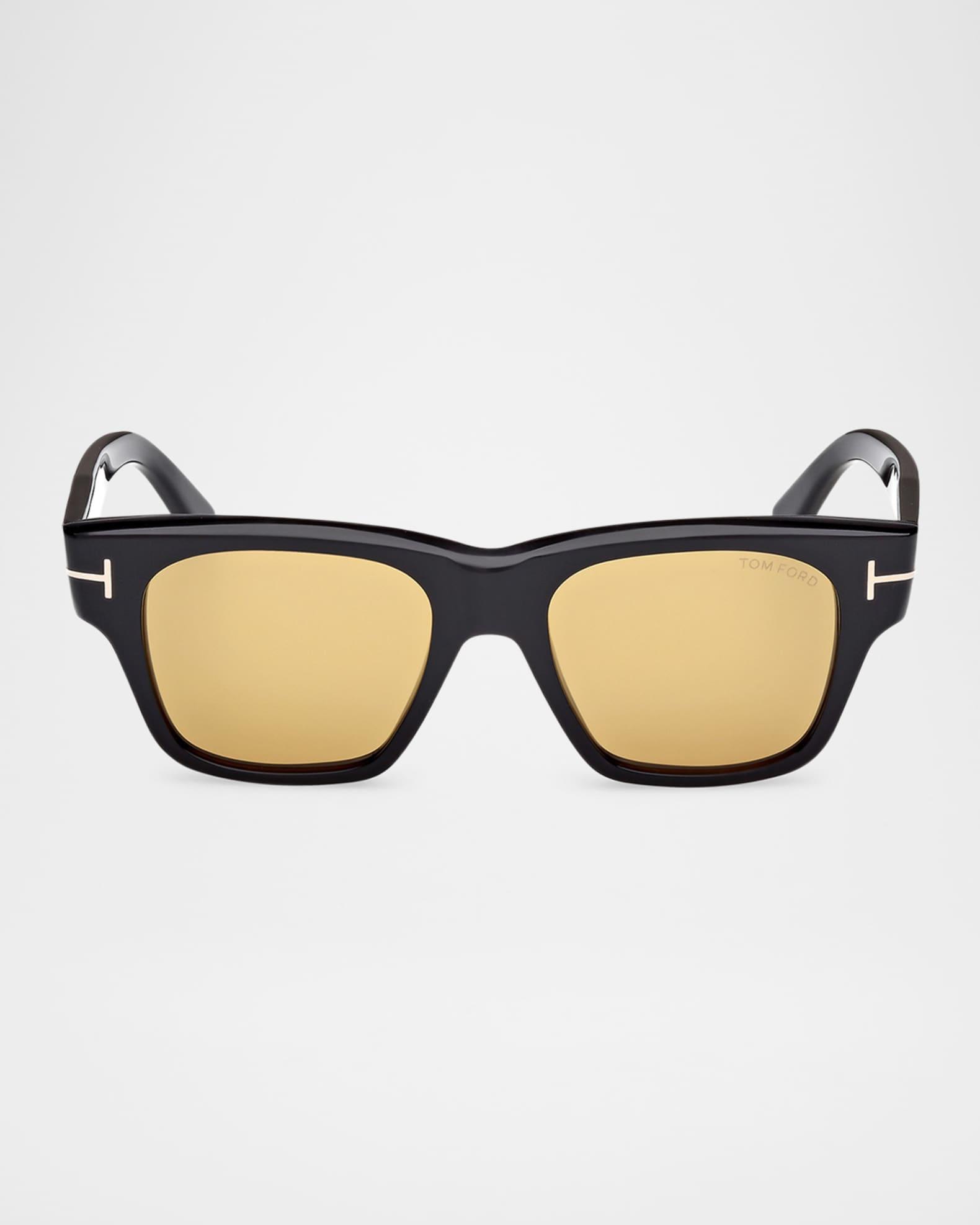 TOM FORD "Caine-02" square sunglasses in sleek acetate Lens/bridge/temple (in mm): 53-19-145 Solid-color lenses Left lens logo script Saddle nose bridge Signature metal T temple decoration Tapered arms Branded temple tips Acetate 100% UVA/UVB protection Made in Italy Proposition 65 warning for California residents