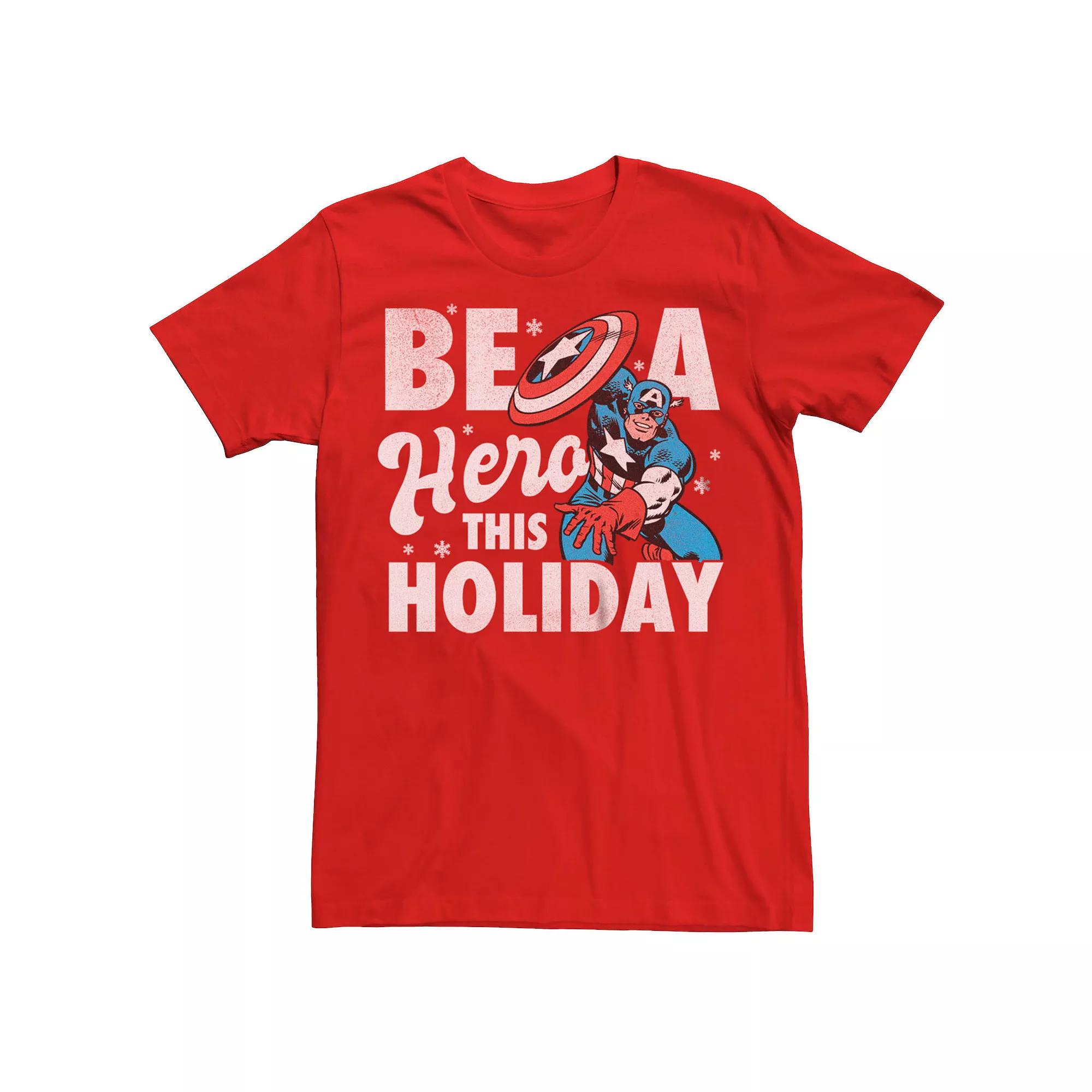 Hell love the look and feel of this Mens Captain America Be A Hero This Holiday Tee. Hell love the look and feel of this Mens Captain America Be A Hero This Holiday Tee. FEATURES Crewneck Short SleevesFABRIC & CARE Cotton Machine wash Imported Color: Red. Gender: male. Age Group: adult.