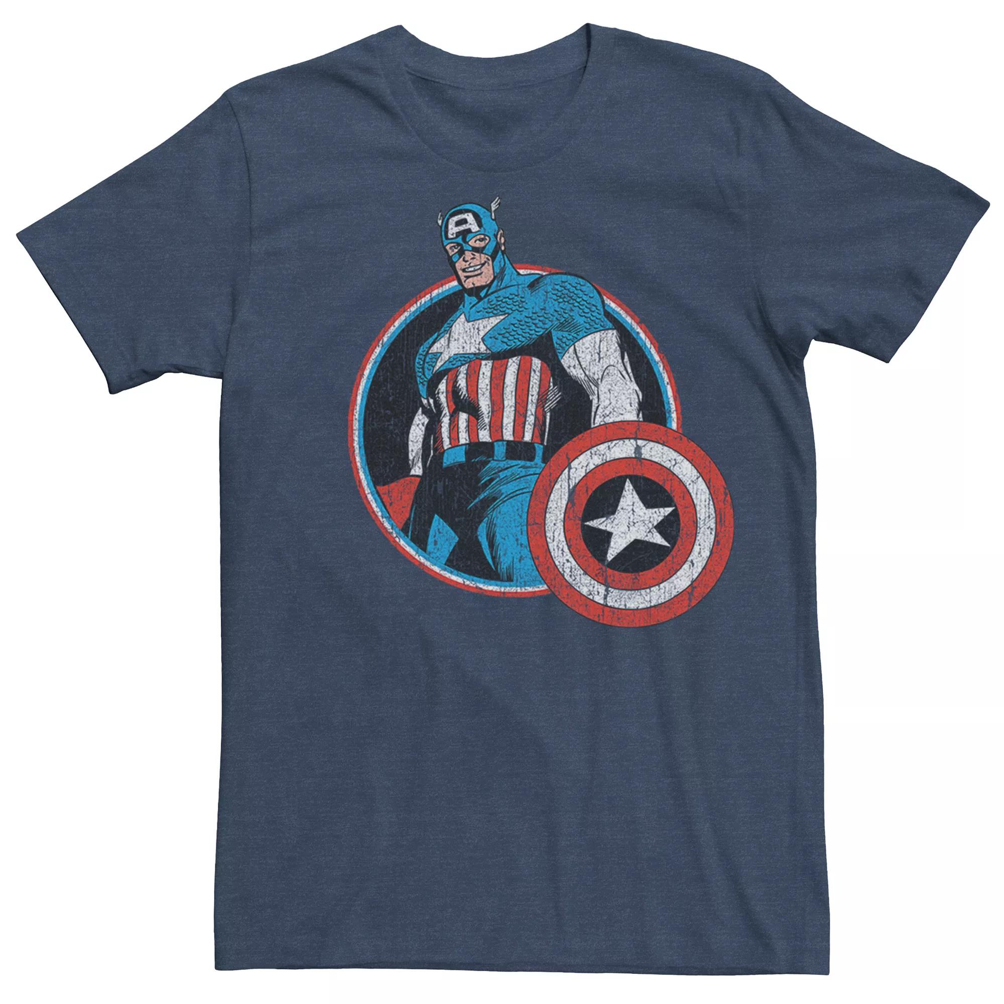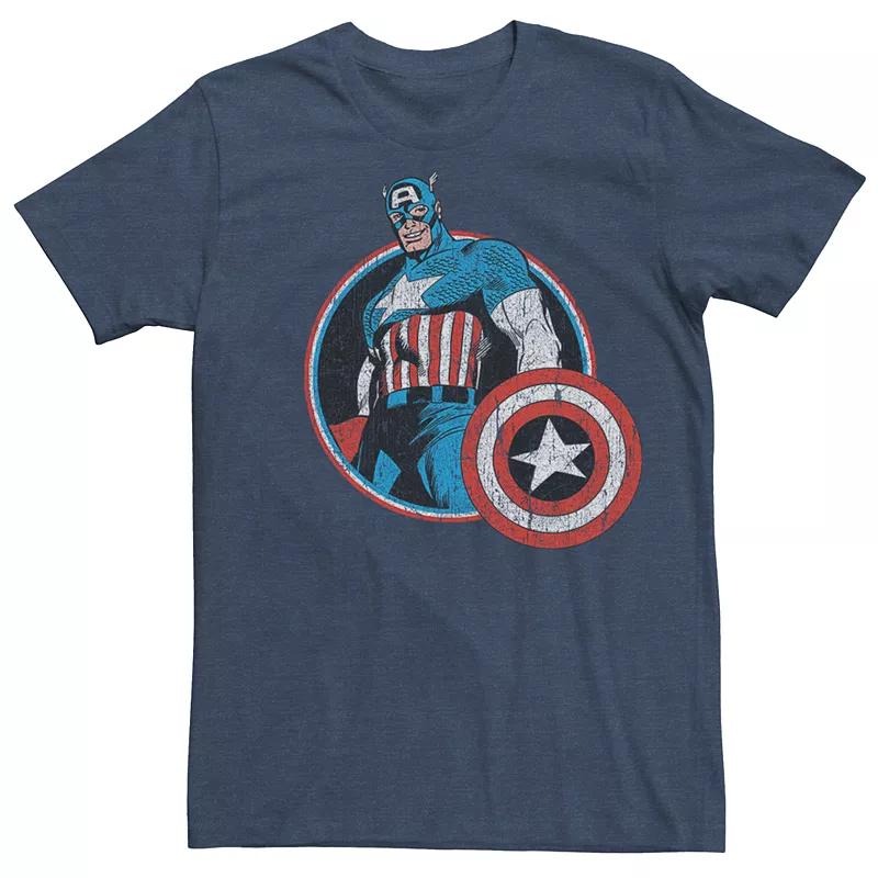 Shield yourself in style with this mens Captain America tee.CrewneckShort sleevesFABRIC & CARECotton, polyesterMachine washImported Size: XL. Color: Navy. Gender: male. Age Group: adult. Pattern: Graphic.