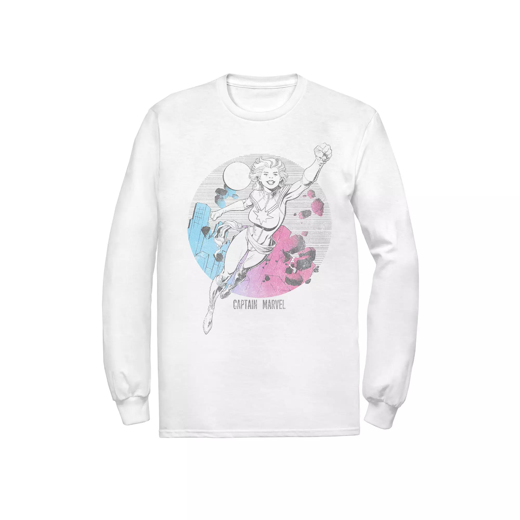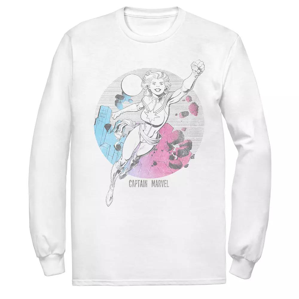 Men's Marvel Captain Marvel Colorful Star Outline Long Sleeve Graphic Tee,