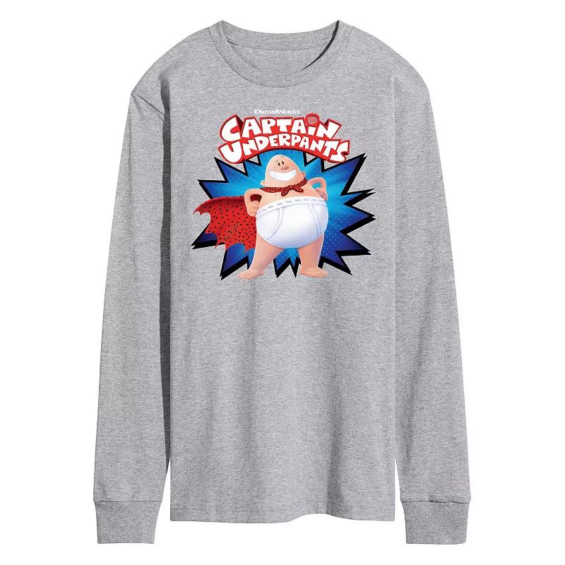 Youll love the fit & feel of this Mens Captain Underpants Logo Long Sleeve Graphic Tee. Youll love the fit & feel of this Mens Captain Underpants Logo Long Sleeve Graphic Tee. FEATURES Crewneck Long sleevesFABRIC & CARE Heather: cotton, polyester; Solid: cotton Machine wash Imported Size: XS. Color: Med Grey. Gender: male. Age Group: adult.