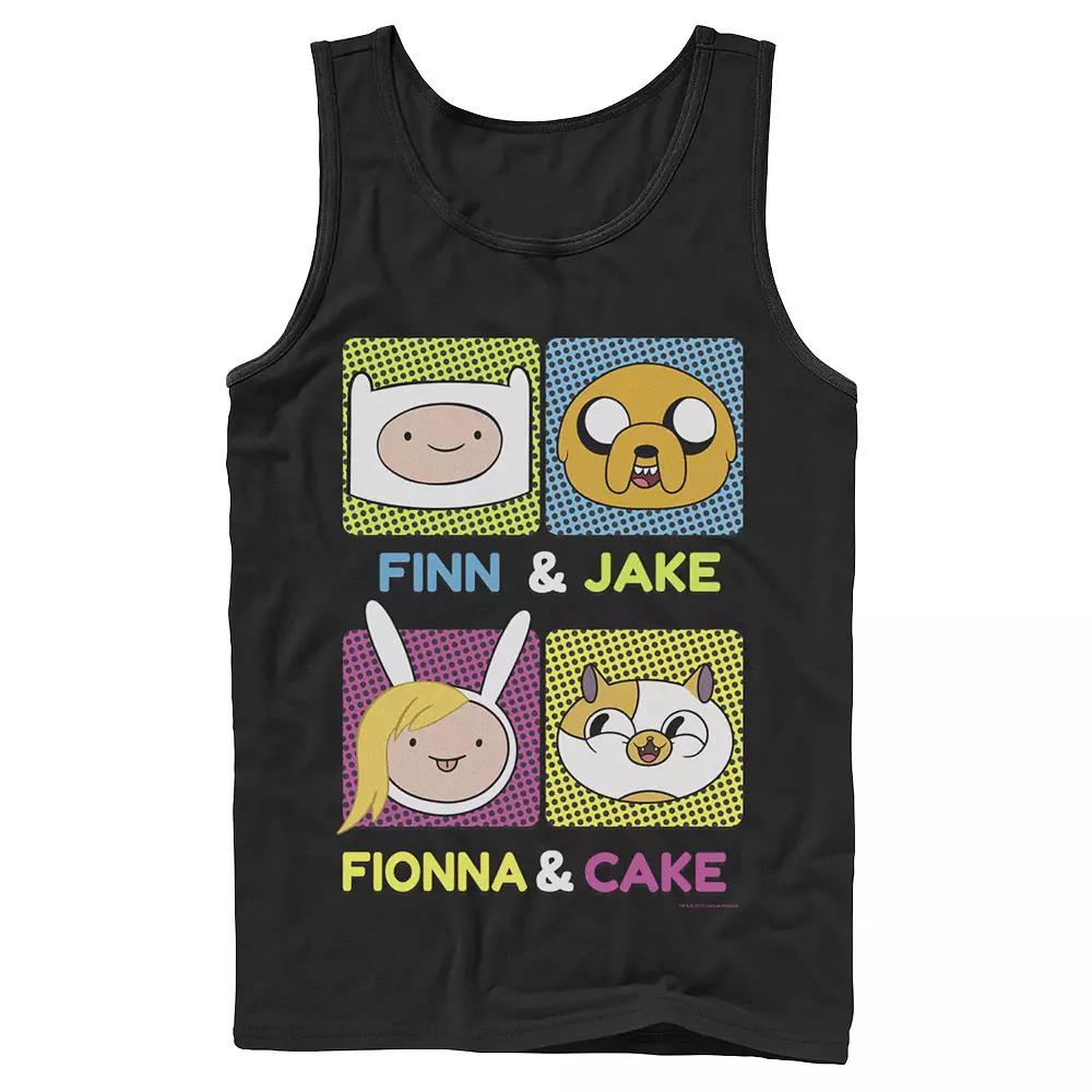Do you prefer Finn & Jake or Fionna & Cake? Why not all four? Show off your love for Cartoon Network's Adventure Time with this men's tank top! Do you prefer Finn & Jake or Fionna & Cake? Why not all four? Show off your love for Cartoon Network's Adventure Time with this men's tank top! No sleeves CrewneckFABRIC & CARE Cotton Machine wash Imported Color: Black. Gender: male. Age Group: adult. Pattern: Graphic.