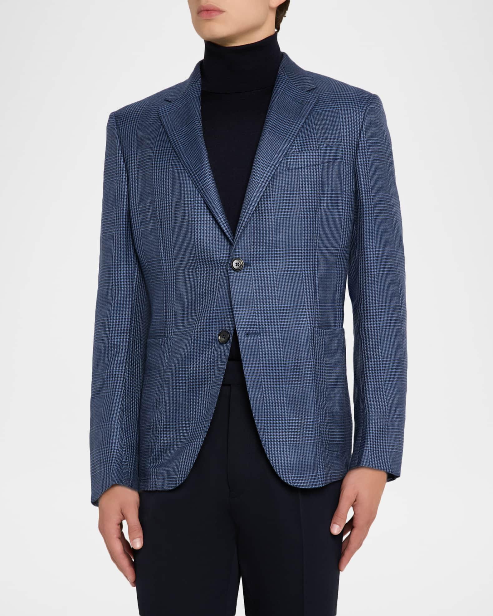 ZEGNA sport coat in sumptuous cashmere and silk with a stylish Prince of Wales pattern Notched lapels Single-breasted front Barchetta chest pocket Hip patch pockets Internal breast pocket Double-vented back Cashmere/silk Unlined Dry clean Made in Italy