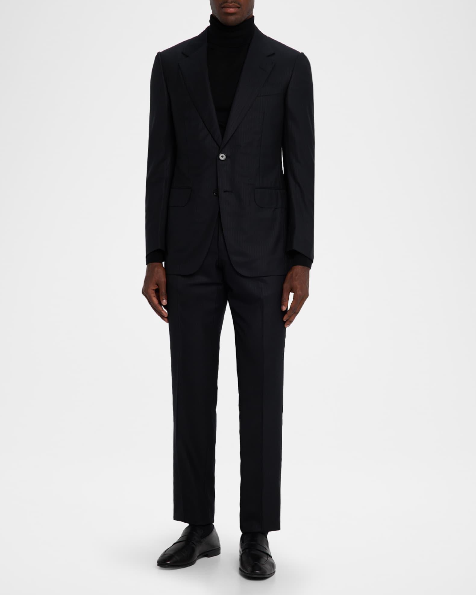 ZEGNA subtle stripe two-piece suit crafted from Centoventimila wool for an extremely lightweight and soft, silk-inspired hand Notched lapels Barchetta chest pocket Hip flap pockets Internal breast pocket Double-vented back Flat-front pants Unfinished hem to be tailored to desired length Wool Unlined Dry clean Made in Italy