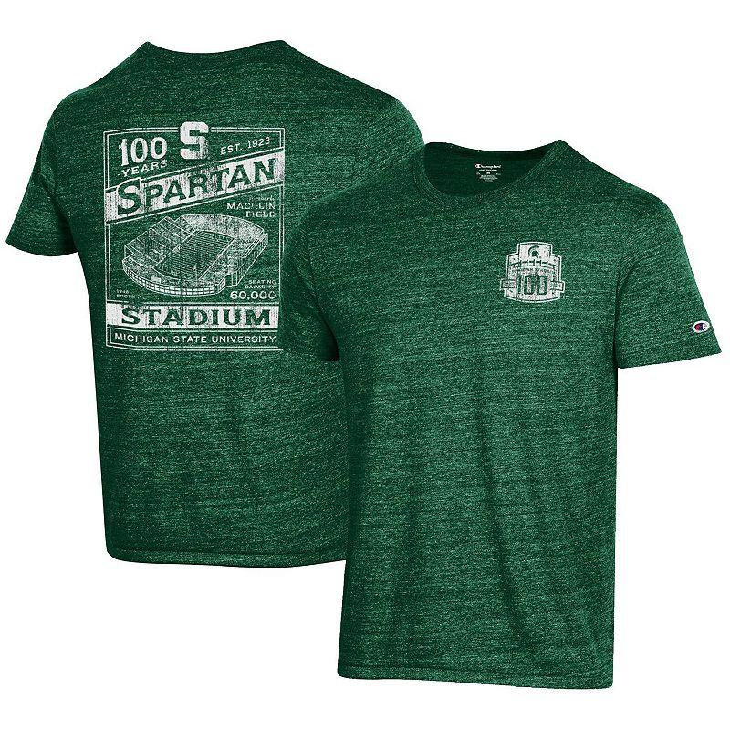Make every day a beautiful day for football when you wear this Michigan State Spartans 100th Anniversary Spartan Stadium T-Shirt from Champion. The tee has printed Michigan State Spartans graphics that honor the stadiums long running history and celebrate its future victories. Whether youre a proud alumni or prospective Spartan, this tee is the perfect way to carry a little piece of Michigan State Spartans with you wherever you go.Make every day a beautiful day for football when you wear this Michigan State Spartans 100th Anniversary Spartan Stadium T-Shirt from Champion. The tee has printed Michigan State Spartans graphics that honor the stadiums long running history and celebrate its future victories. Whether youre a proud alumni or prospective Spartan, this tee is the perfect way to carry a little piece of Michigan State Spartans with you wherever you go.PRODUCT FEATURESCrew neckOfficially licensedImportedShort sleeveMachine wash, tumble dry lowBrand: ChampionScreen print graphicsMaterial: 100% Cotton Color: Green. Gender: male. Age Group: adult.