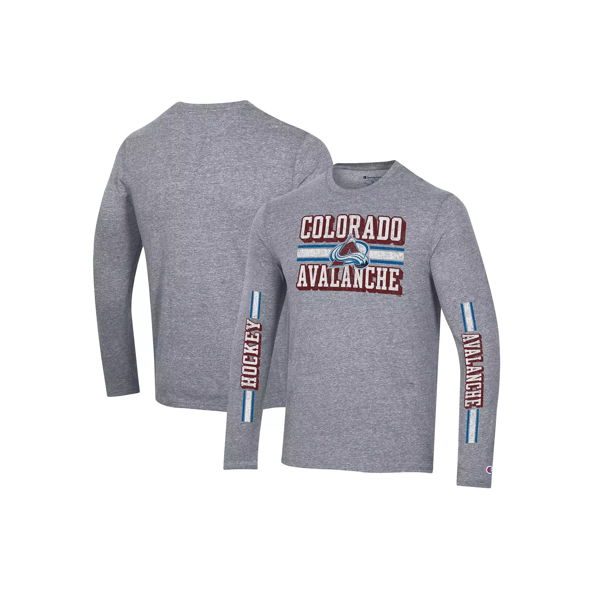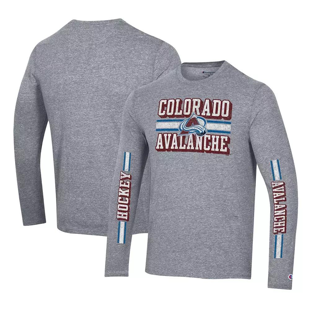 Put your Colorado Avalanche fandom on full display when you wear this Dual-Stripe T-Shirt from Champion. It features distressed graphics on the front chest and down both sleeves that show your team spirit is undeniable. Plus, tri-blend material makes this long-sleeve tee a comfortable option for all day wear when supporting the Colorado Avalanche.