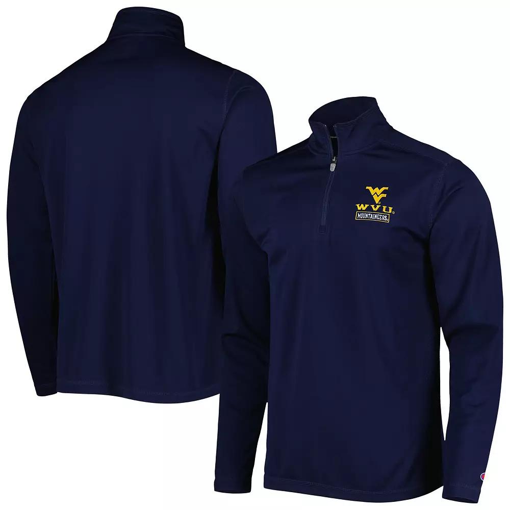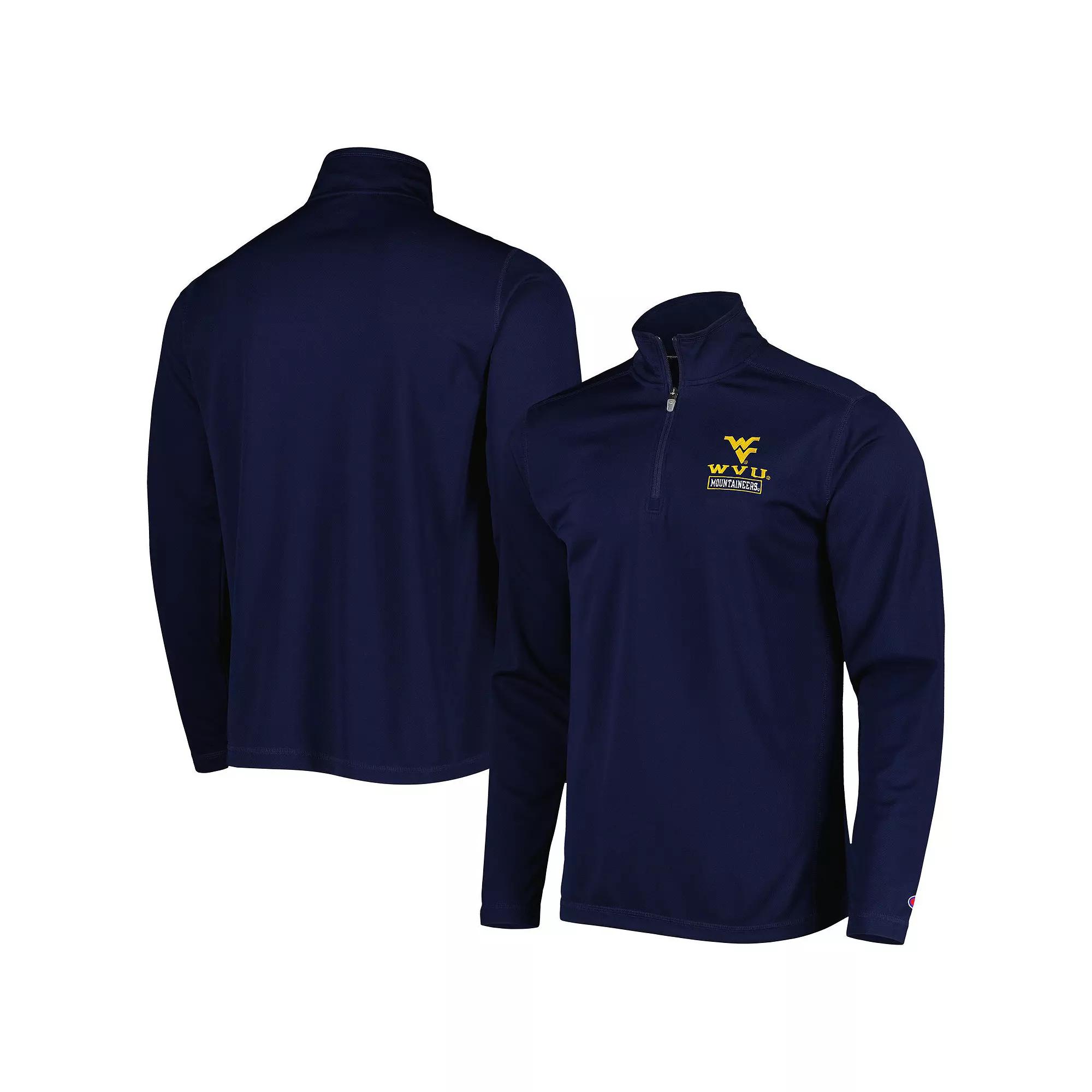 Men's Champion Navy West Virginia Mountaineers Textured Quarter-Zip Jacket,  Product Image