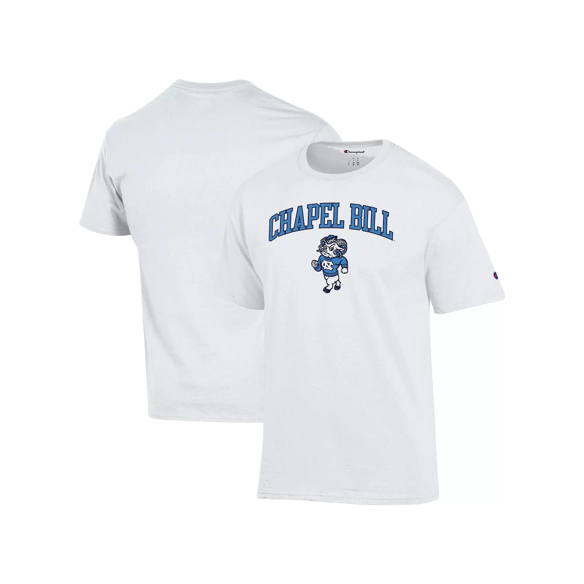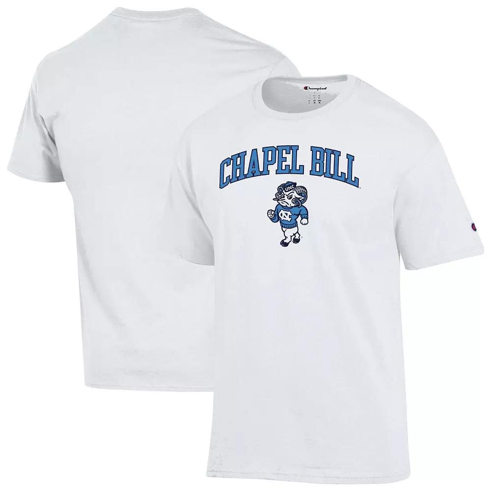 Showcase your North Carolina Tar Heels pride with this stylish Chapel Bill T-Shirt from Champion. Made from breathable 100% cotton, this tee provides lasting comfort for all-day wear. The eye-catching screen-printed graphic on the front proudly celebrates the new era in North Carolina football, making it clear where your collegiate allegiances lie.Showcase your North Carolina Tar Heels pride with this stylish Chapel Bill T-Shirt from Champion. Made from breathable 100% cotton, this tee provides lasting comfort for all-day wear. The eye-catching screen-printed graphic on the front proudly celebrates the new era in North Carolina football, making it clear where your collegiate allegiances lie.PRODUCT FEATURESShort sleeveBrand: ChampionOfficially licensedImportedCrew neckScreen print graphicsMaterial: 100% CottonMachine wash, tumble dry low Color: White. Gender: male. Age Group: adult.