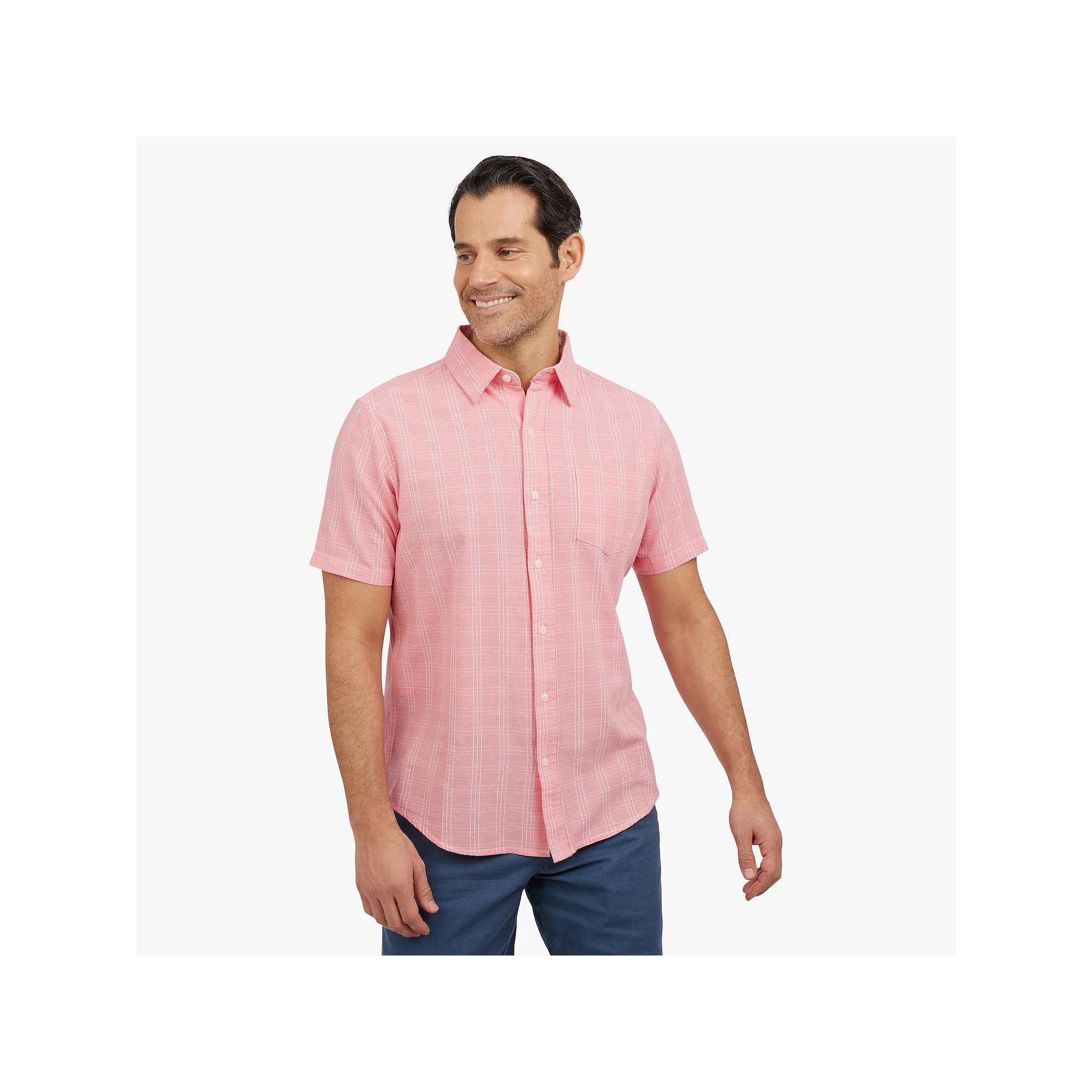 Featuring a soft construction and stylish print, this Men's Chaps Short Sleeve Button Down Shirt is a warmer weather must-have. Click on this MEN'S GUIDE to find the perfect fit and more!Featuring a soft construction and stylish print, this Men's Chaps Short Sleeve Button Down Shirt is a warmer weather must-have. Click on this MEN'S GUIDE to find the perfect fit and more!FEATURES Button front Rounded hem Short sleeves 1 pocket on front left chestFIT & SIZING Classic fitFABRIC & CARE Cotton Machine wash - Delicate Imported Color: Dubarry. Gender: male. Age Group: adult.