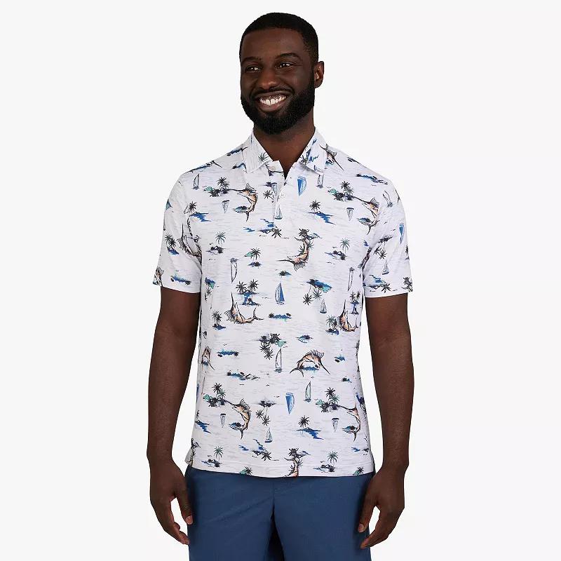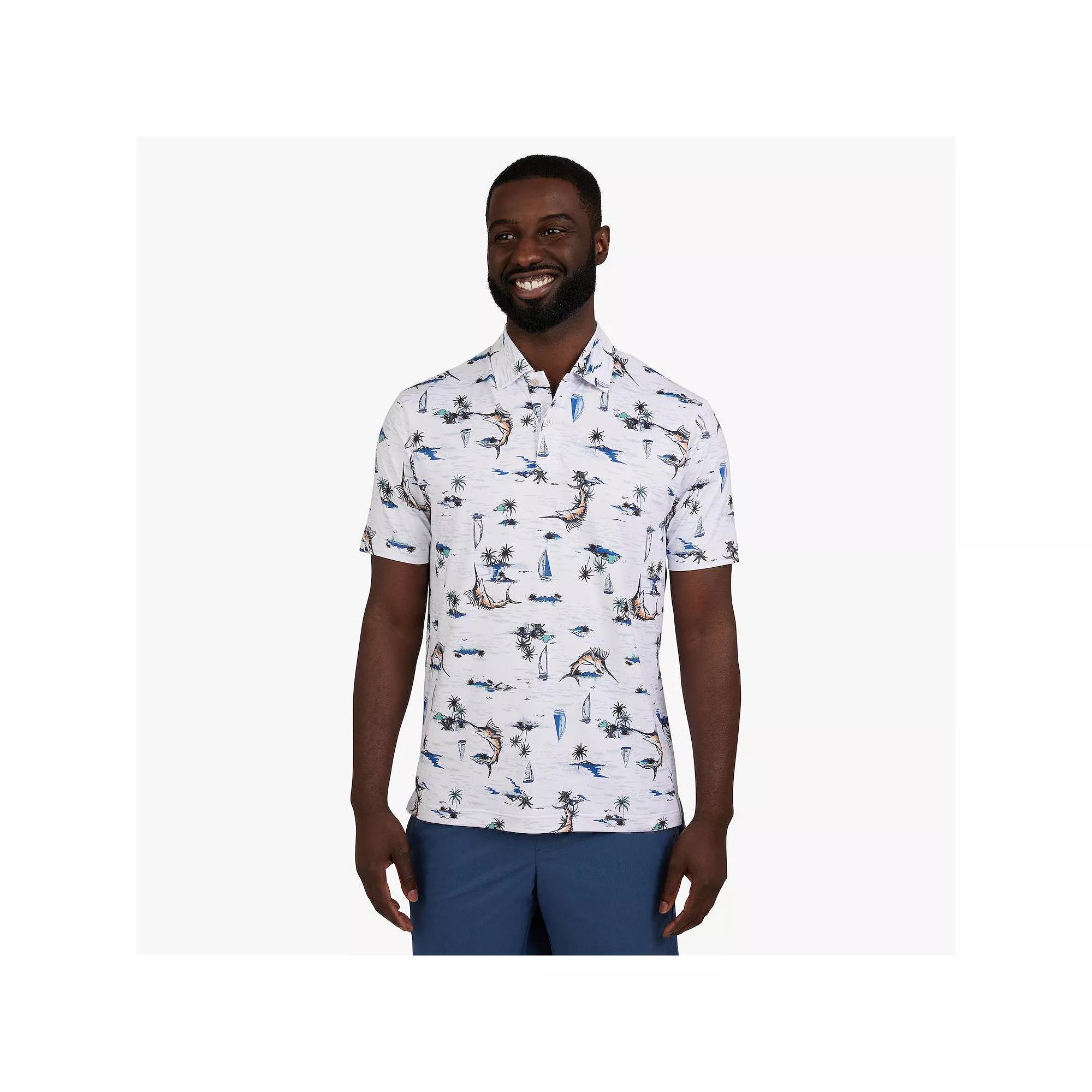You'll love the comfortable fit and fun, colorful, design of this men's short sleeve printed performance polo from Chaps. Click on this MEN'S GUIDE to find the perfect fit and more!You'll love the comfortable fit and fun, colorful, design of this men's short sleeve printed performance polo from Chaps. Click on this MEN'S GUIDE to find the perfect fit and more!FEATURES Collared polo neckline with locker loop inside back 2-button placket Short sleeves Split hem for movement All over print Stretchy construction with soft peached feelFIT & SIZING Classic fitFABRIC & CARE Polyester, spandex Machine wash - Delicate Imported Size: XL. Color: White Sailfish. Gender: male. Age Group: adult.