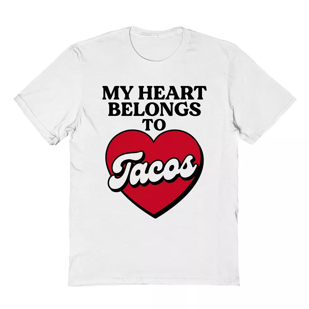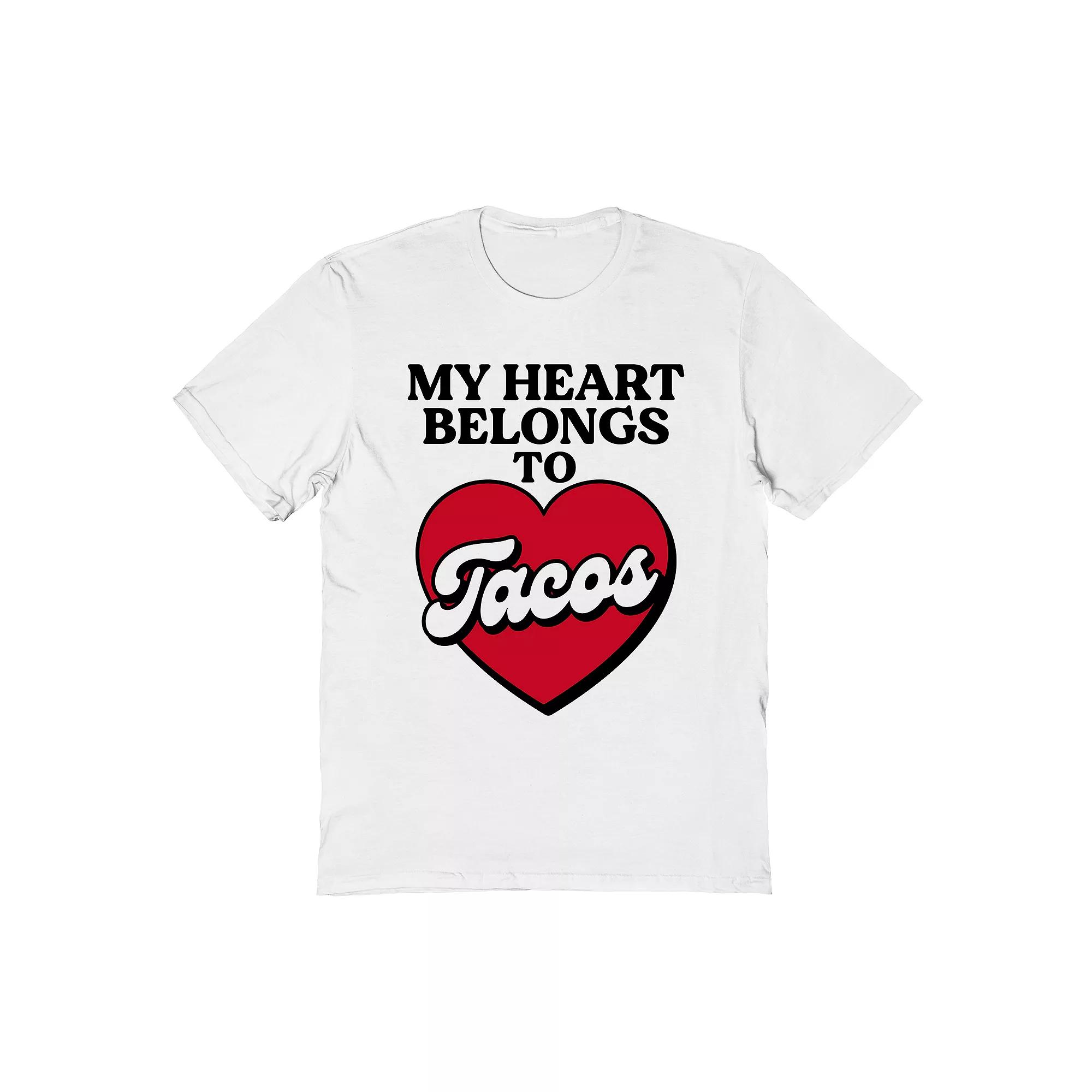 Feed your need for tasty style with this men's my heart belongs to tacos tee. Feed your need for tasty style with this men's my heart belongs to tacos tee. FEATURES Crewneck Soft, ringspun fabric Short sleeveFABRIC & CARE Cotton Machine wash Imported Size: XXL. Color: White. Gender: male. Age Group: adult. Pattern: Graphic.