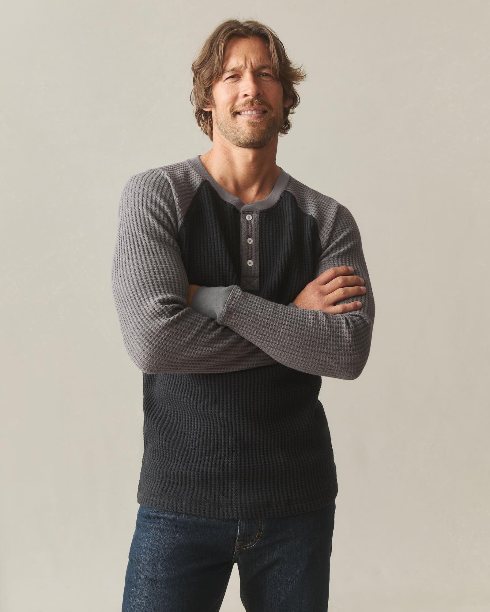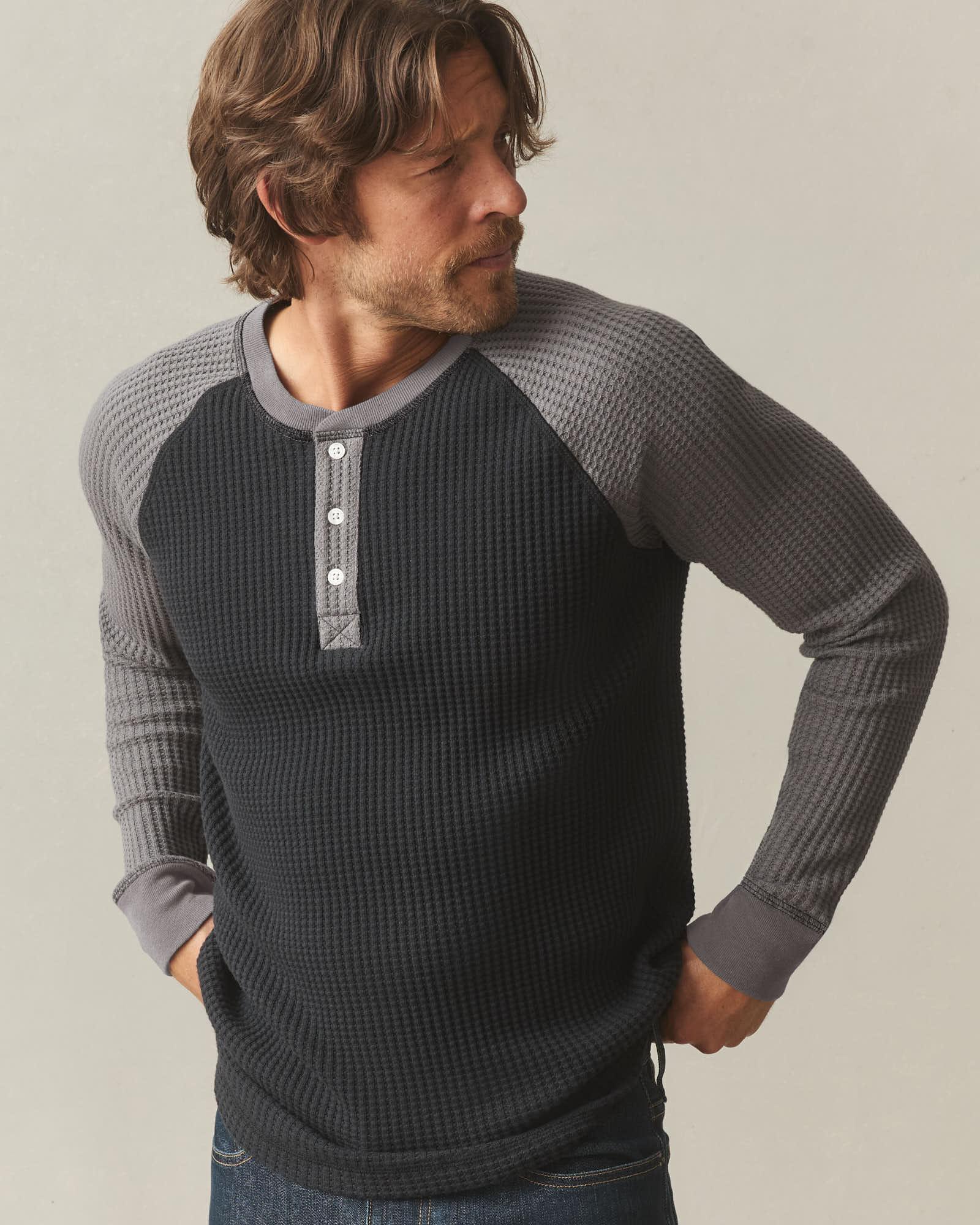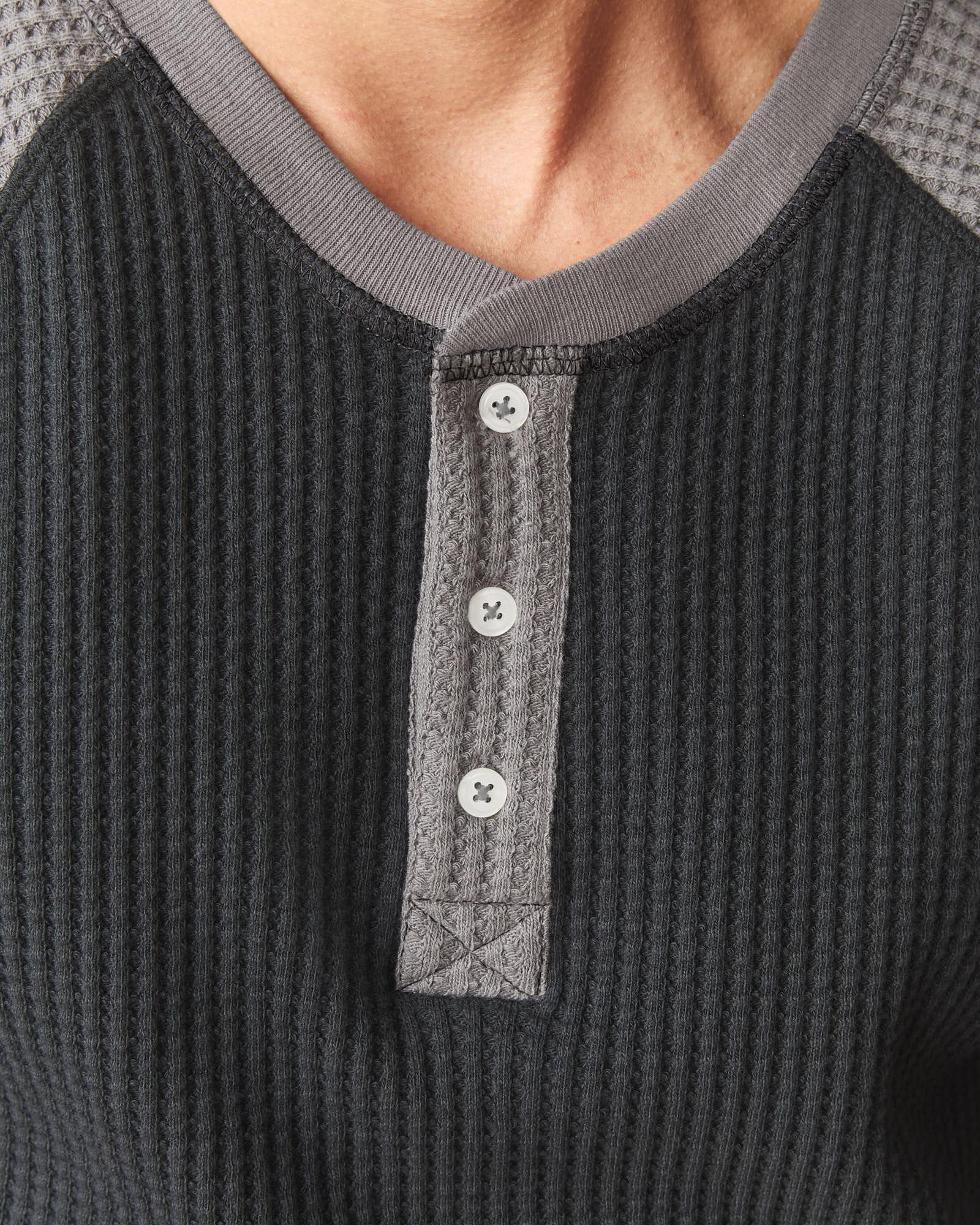 Men's Colorblock Waffle Long Sleeve Henley - Black Thunderstorm