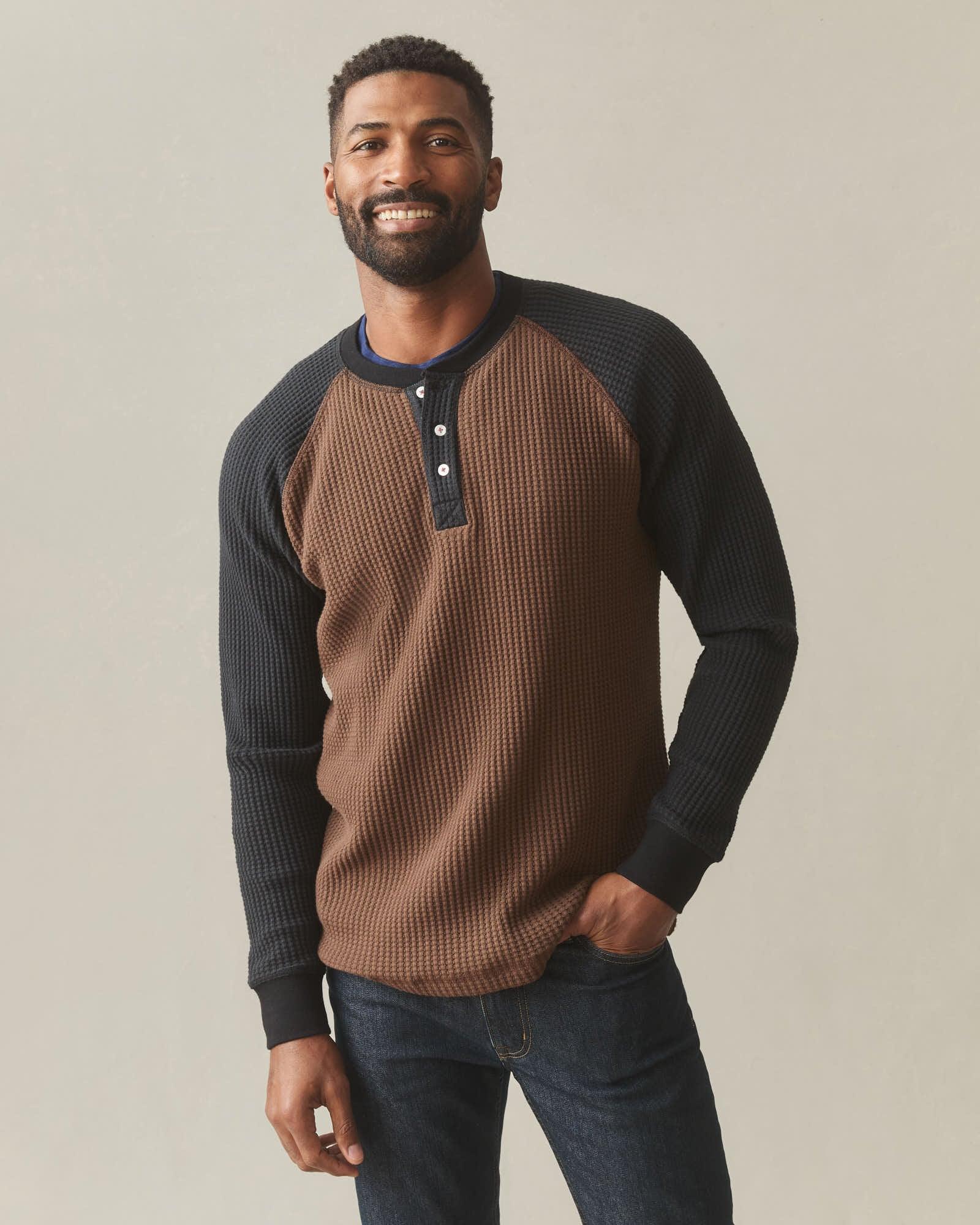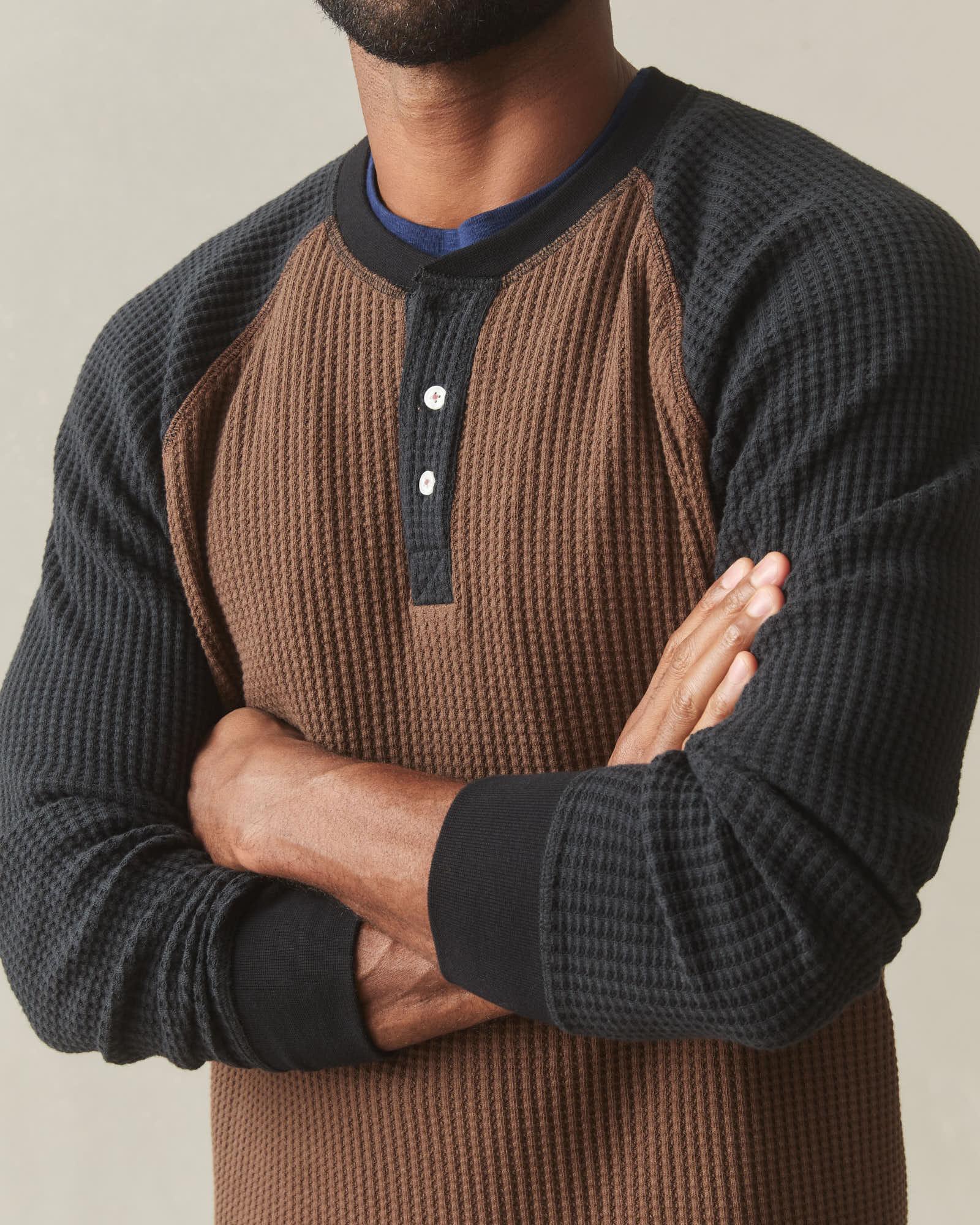 Men's Colorblock Waffle Long Sleeve Henley - Cocoa Black