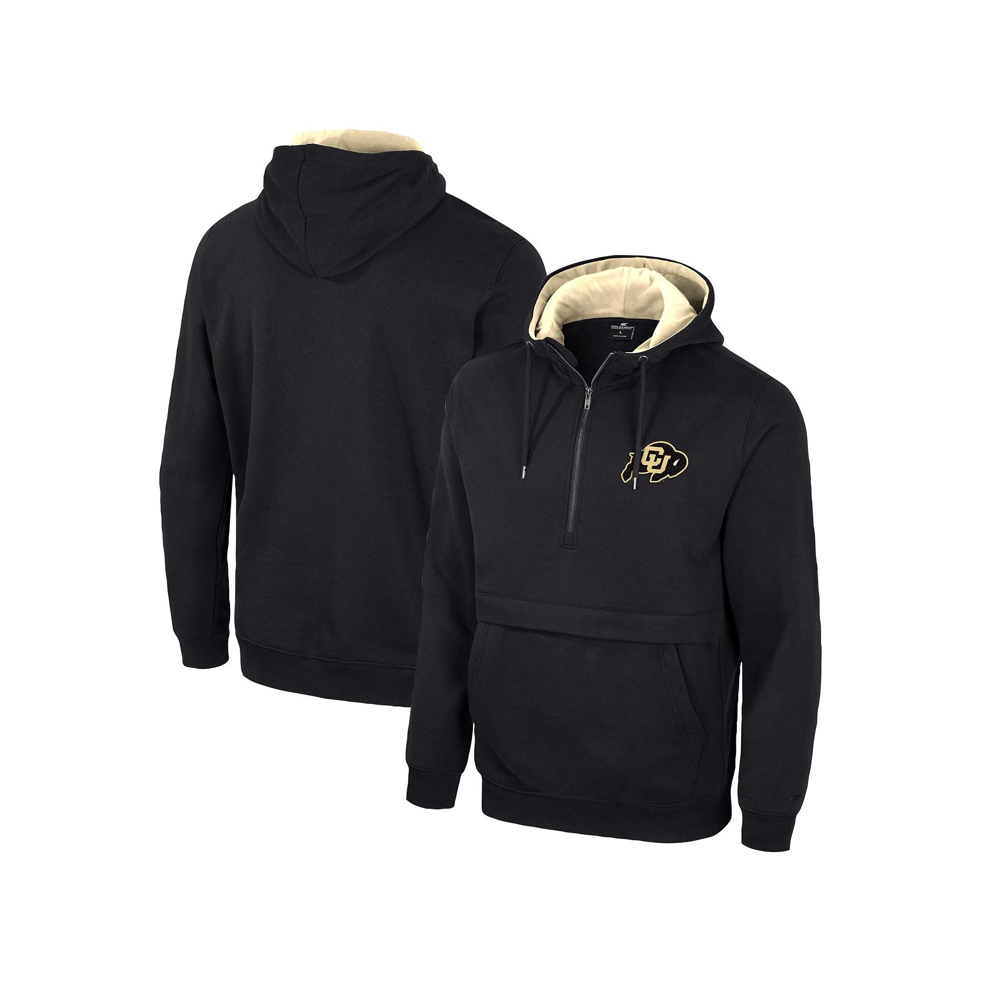 Showcase your unwavering love for Colorado Buffaloes no matter how chilly with this Colosseum half-zip pullover. Offering a toasty midweight construction, fleece lining and a hood, this is the perfect piece to keep warm as you cheer your team to victory. The bold Colorado Buffaloes graphics on the chest and striking colorway ensure your fandom is shown loud and proud.Showcase your unwavering love for Colorado Buffaloes no matter how chilly with this Colosseum half-zip pullover. Offering a toasty midweight construction, fleece lining and a hood, this is the perfect piece to keep warm as you cheer your team to victory. The bold Colorado Buffaloes graphics on the chest and striking colorway ensure your fandom is shown loud and proud.PRODUCT FEATURES1/2-ZipOfficially licensedHoodedMidweight hoodie suitable for moderate temperaturesMachine wash, tumble dry lowBrand: ColosseumImportedLong sleeveFront pouch pocketMaterial: 70% Cotton/30% Polyester - Body; 100% Cotton - Hood LiningFleece liningEmbroidered graphics Color: Black. Gender: male. Age Group: adult.
