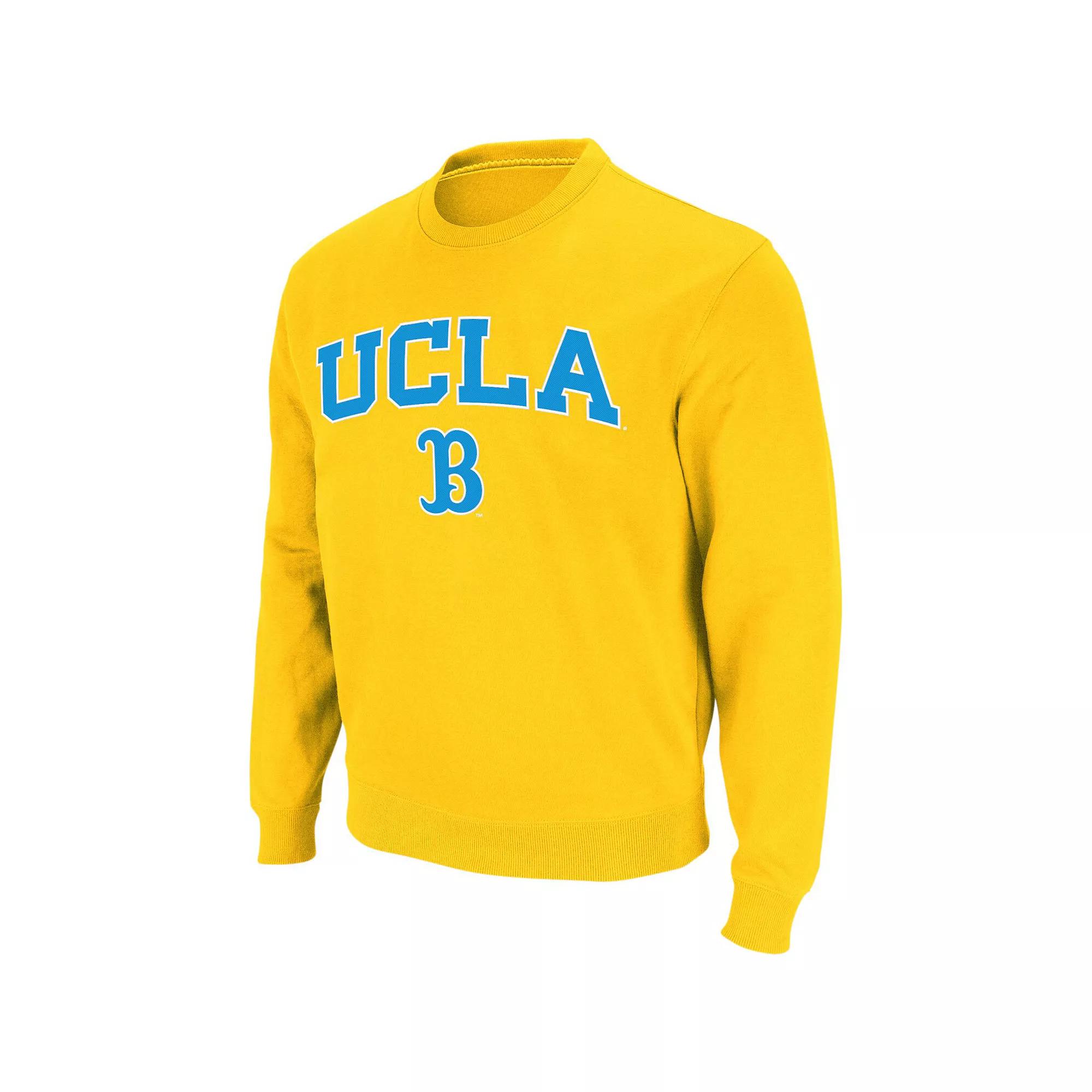 Its not hard to come to the conclusion that youre a hardcore UCLA Bruins fan. This season, raise your fandom to a new level when you put on this UCLA Bruins Arch & Logo Tackle Twill pullover sweatshirt from Colosseum. This pullover features a comfortable fit and crisp UCLA Bruins graphics to help emphasize your team pride.Its not hard to come to the conclusion that youre a hardcore UCLA Bruins fan. This season, raise your fandom to a new level when you put on this UCLA Bruins Arch & Logo Tackle Twill pullover sweatshirt from Colosseum. This pullover features a comfortable fit and crisp UCLA Bruins graphics to help emphasize your team pride.ImportedBrand: ColosseumMaterial: 70% Cotton/30% PolyesterOfficially licensedLong sleeveMachine wash, tumble dry lowRib-knit cuffs, collar and waistbandCrew neckSizing Tip: Product runs large. We recommend ordering one size smaller than you normally wear.Embroidered graphicsPulloverMidweight sweatshirt suitable for moderate temperaturesTackle twill applique Color: UCL GOLD. Gender: male. Age Group: adult.