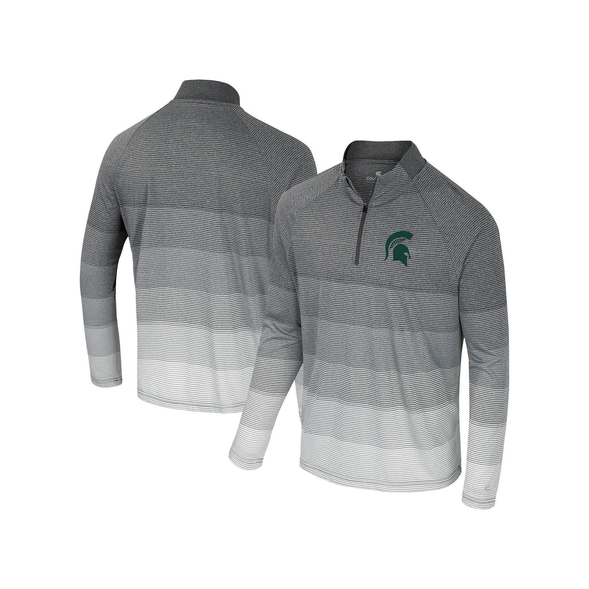 Show your Michigan State Spartans spirit with this Colosseum AI Striped Mesh Quarter-Zip Raglan Windshirt. This windshirt boasts a breathable mesh-like fabric, ensuring you stay cool and comfortable whether you're cheering from the stands or enjoying a sunny day out. The tonal striped design and rubberized team logo on the left chest add a touch of Michigan State Spartans pride to your game day attire.Show your Michigan State Spartans spirit with this Colosseum AI Striped Mesh Quarter-Zip Raglan Windshirt. This windshirt boasts a breathable mesh-like fabric, ensuring you stay cool and comfortable whether you're cheering from the stands or enjoying a sunny day out. The tonal striped design and rubberized team logo on the left chest add a touch of Michigan State Spartans pride to your game day attire.PRODUCT FEATURES1/4-ZipOfficially licensedTonal striped designMachine wash, tumble dry lowImportedMaterial: 100% PolyesterDouble-stitched hemLong sleeveBreathable mesh-like fabricRaglan sleevesBrand: ColosseumRubberized team logo is printed on left chest Size: XL. Color: Grey. Gender: male. Age Group: adult.
