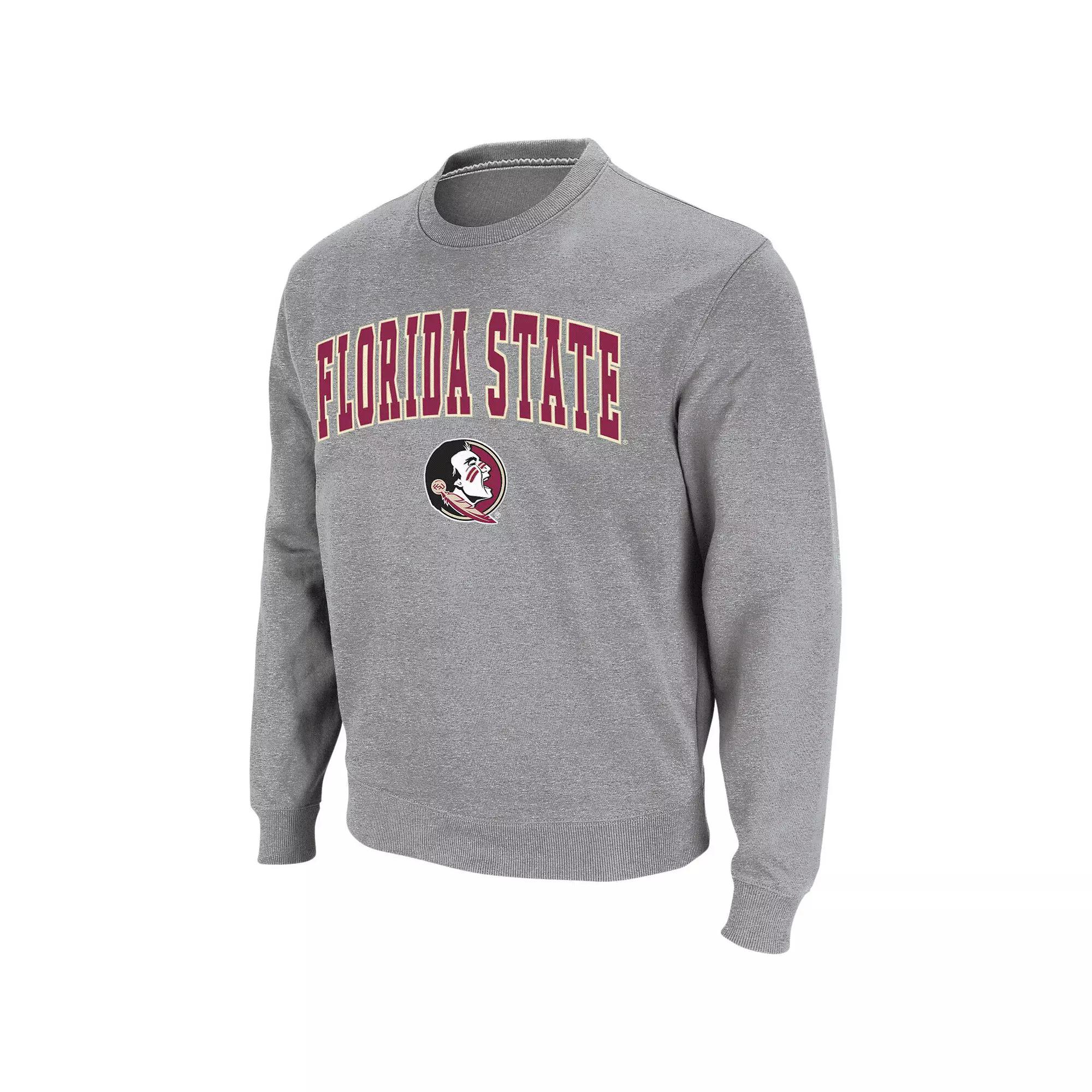 Men's Colosseum Heather Gray Florida State Seminoles Arch & Logo Crew Neck Sweatshirt,  Product Image