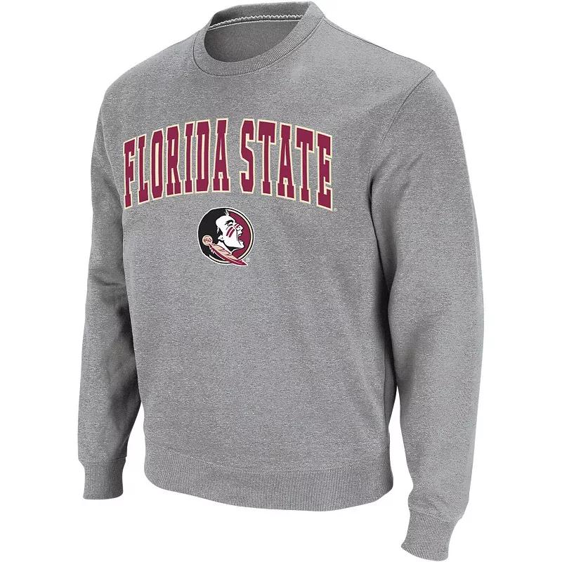 Men's Colosseum Heather Gray Florida State Seminoles Arch & Logo Crew Neck Sweatshirt,