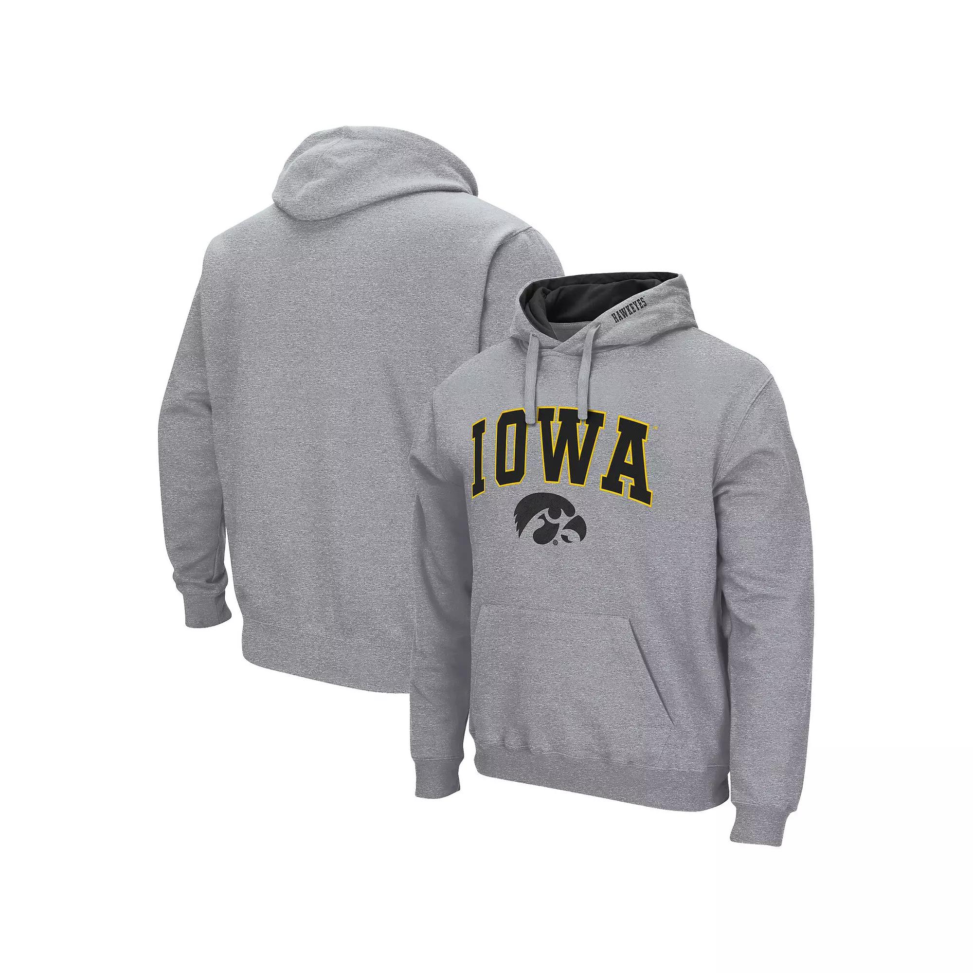Men's Colosseum Heather Gray Iowa Hawkeyes Arch & Logo 3.0 Pullover Hoodie,