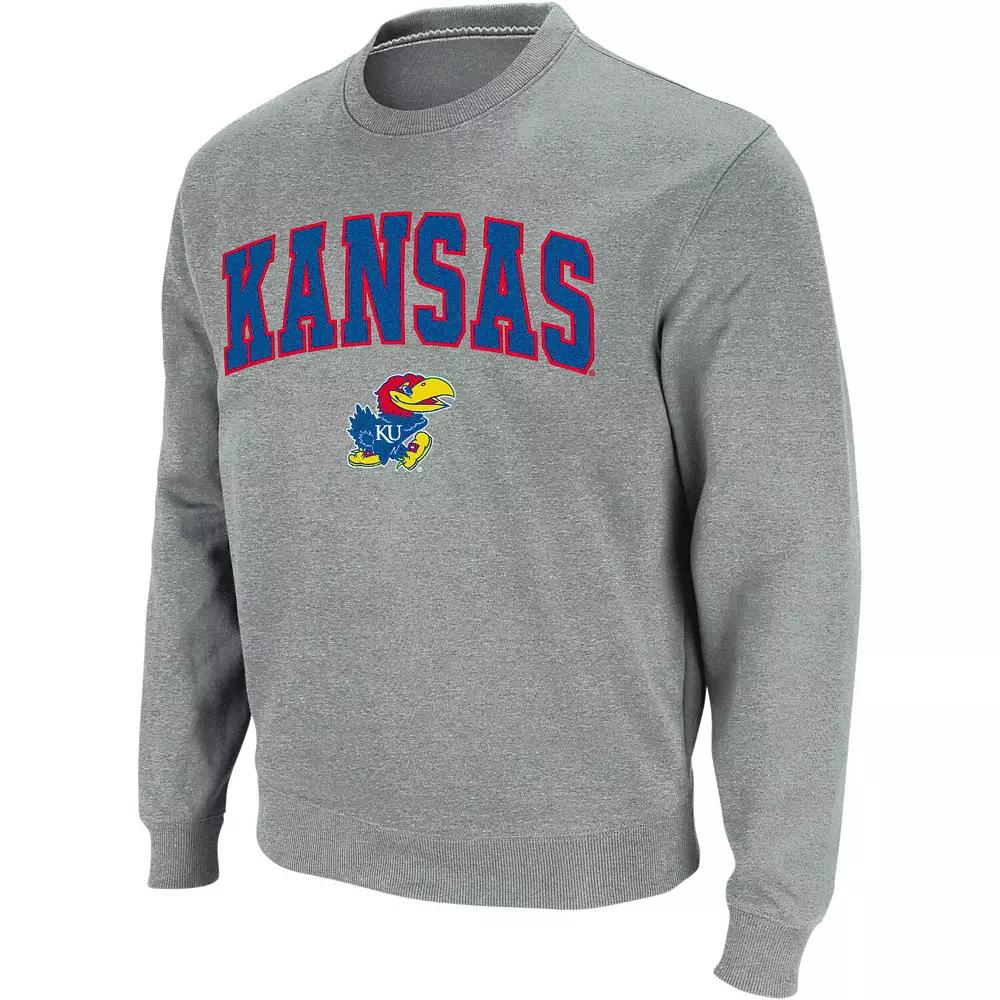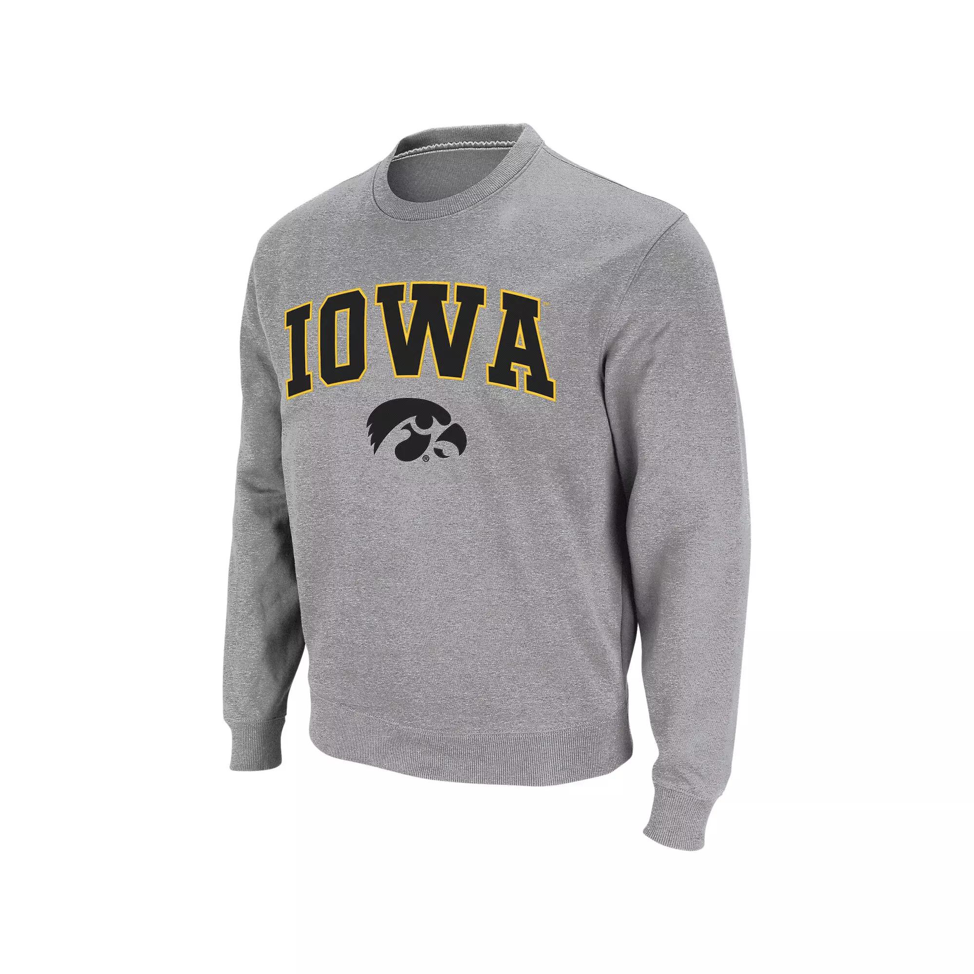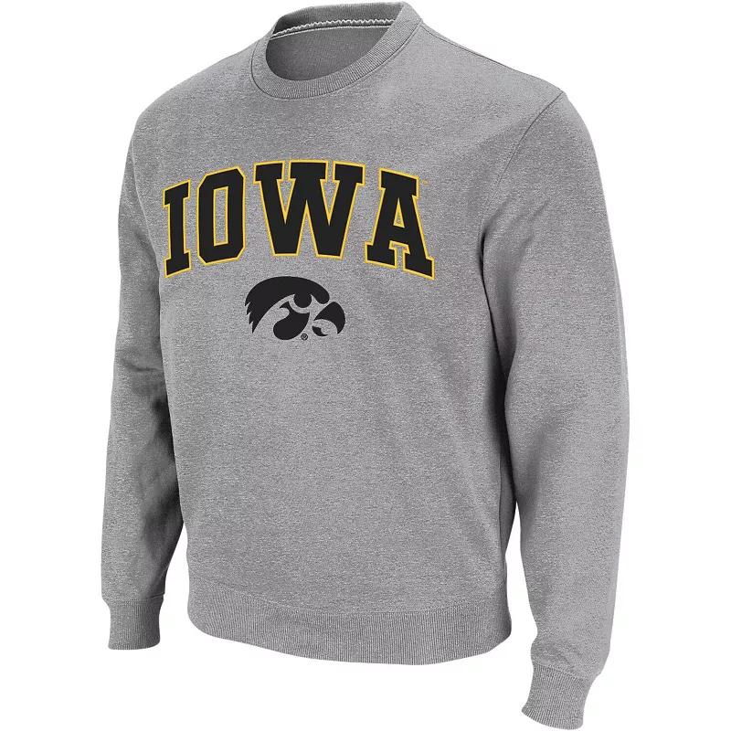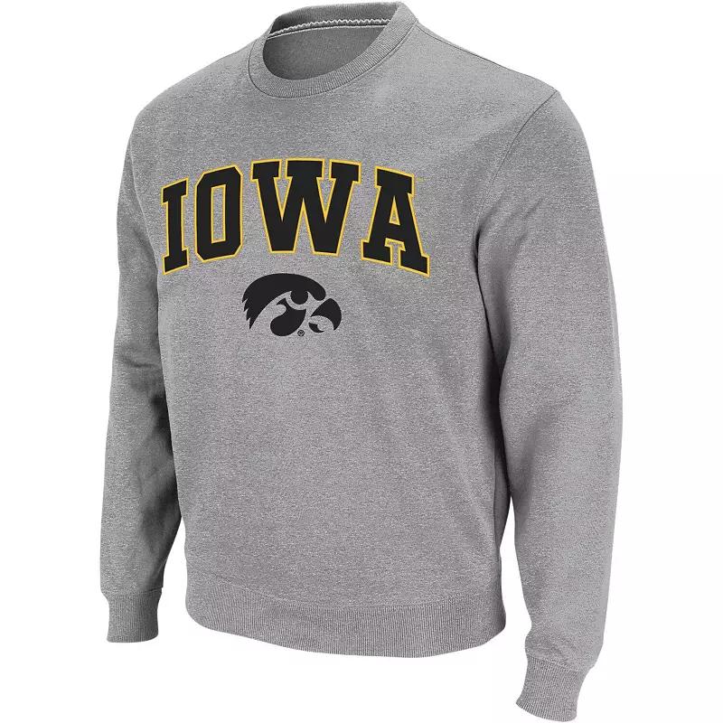 Men's Colosseum Heather Gray Iowa Hawkeyes Arch & Logo Crew Neck Sweatshirt,