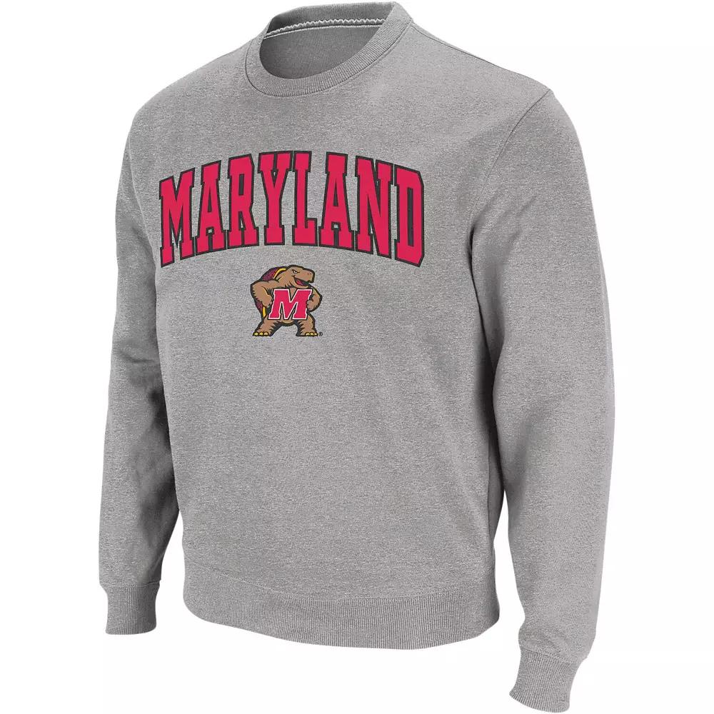 Men's Colosseum Heather Gray Maryland Terrapins Arch & Logo Crew Neck Sweatshirt,