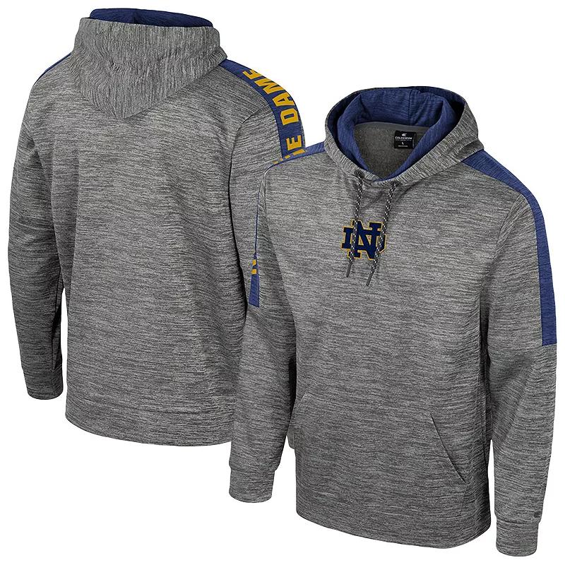 Stay warm and spirited on game day with the Colosseum Dozer Pullover Hoodie, designed for the dedicated fans of the Notre Dame Fighting Irish. This comfortable hoodie features an 80% cotton and 20% polyester blend, offering a soft and cozy feel perfect for game day. With a heat-sealed team logo on the chest and wordmark on the right sleeve, your Notre Dame pride will be on full display.Stay warm and spirited on game day with the Colosseum Dozer Pullover Hoodie, designed for the dedicated fans of the Notre Dame Fighting Irish. This comfortable hoodie features an 80% cotton and 20% polyester blend, offering a soft and cozy feel perfect for game day. With a heat-sealed team logo on the chest and wordmark on the right sleeve, your Notre Dame pride will be on full display.PRODUCT FEATURESOfficially licensedFront pouch pocket for hands-free storage and extra layer of comfortPulloverMachine wash with garment inside out, tumble dry lowImportedMaterial: 80% Cotton/20% PolyesterWordmark on right sleeveLong sleeveHeat-sealed team logo on chestBrand: ColosseumHooded Size: M. Color: Grey. Gender: male. Age Group: adult.