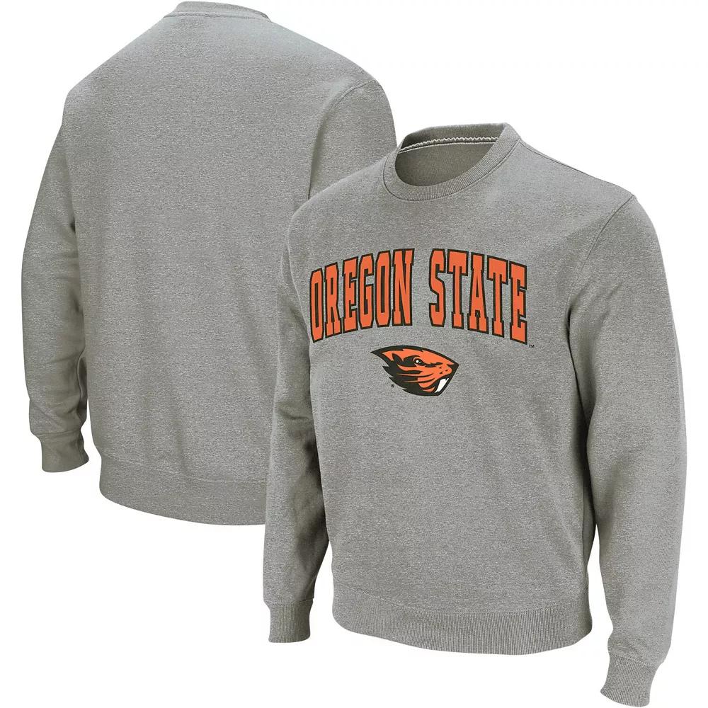 Men's Colosseum Heather Gray Oregon State Beavers Arch & Logo Crew Neck Sweatshirt,
