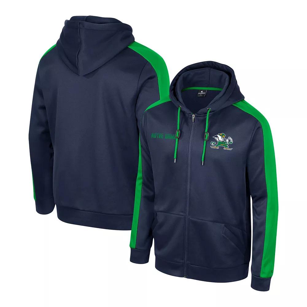 The Mens Colosseum Navy Notre Dame Fighting Irish Reese Full-Zip Hoodie is the perfect way to show unwavering support for the Fighting Irish. Made from durable polyester, this midweight hoodie is ideal for moderate temperatures. Screen-printed Notre Dame Fighting Irish logos proudly adorn the hoodie, while the drawstring with toggle sliders ensures a comfortable fit. Whether cheering at the stadium or relaxing at home, this hoodie keeps you warm and stylish.The Mens Colosseum Navy Notre Dame Fighting Irish Reese Full-Zip Hoodie is the perfect way to show unwavering support for the Fighting Irish. Made from durable polyester, this midweight hoodie is ideal for moderate temperatures. Screen-printed Notre Dame Fighting Irish logos proudly adorn the hoodie, while the drawstring with toggle sliders ensures a comfortable fit. Whether cheering at the stadium or relaxing at home, this hoodie keeps you warm and stylish.PRODUCT FEATURESOfficially licensedMachine wash, tumble dry lowScreen print graphicsLong sleeveHoodedImportedDrawstring with toggle slidersMaterial: 100% PolyesterFull ZipBrand: ColosseumMidweight hoodie suitable for moderate temperaturesTwo front pockets Gender: male. Age Group: adult. Material: Cotton.
