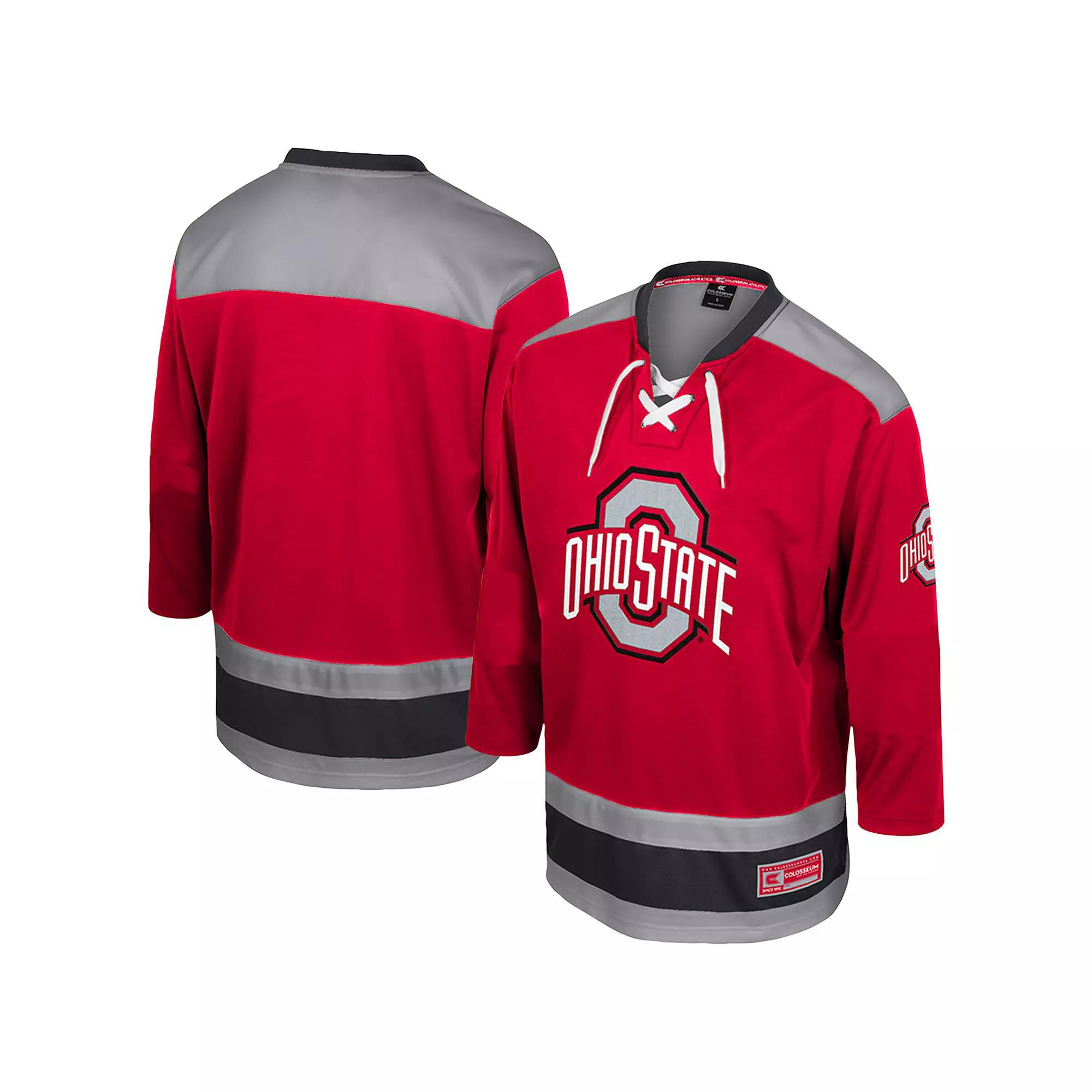 Show your Ohio State Buckeyes spirit with this Colosseum Athletic Machine Fashion Hockey Jersey. This bold jersey features sewn-in team color stripes on each sleeve and a classic lace-up neck for an authentic hockey aesthetic. Made from durable polyester, this jersey is built to withstand even the most intense game-day action, while the team logo on the chest and left sleeve proudly display your Ohio State Buckeyes pride.Show your Ohio State Buckeyes spirit with this Colosseum Athletic Machine Fashion Hockey Jersey. This bold jersey features sewn-in team color stripes on each sleeve and a classic lace-up neck for an authentic hockey aesthetic. Made from durable polyester, this jersey is built to withstand even the most intense game-day action, while the team logo on the chest and left sleeve proudly display your Ohio State Buckeyes pride.PRODUCT FEATURESBrand: ColosseumImportedLace-up neckFashion JerseyOfficially licensedMachine wash, tumble dry lowLong sleeveSewn-in team color stripes on each sleeveMaterial: 100% PolyesterTeam logo on chest and left sleeve Color: Red. Gender: male. Age Group: adult.