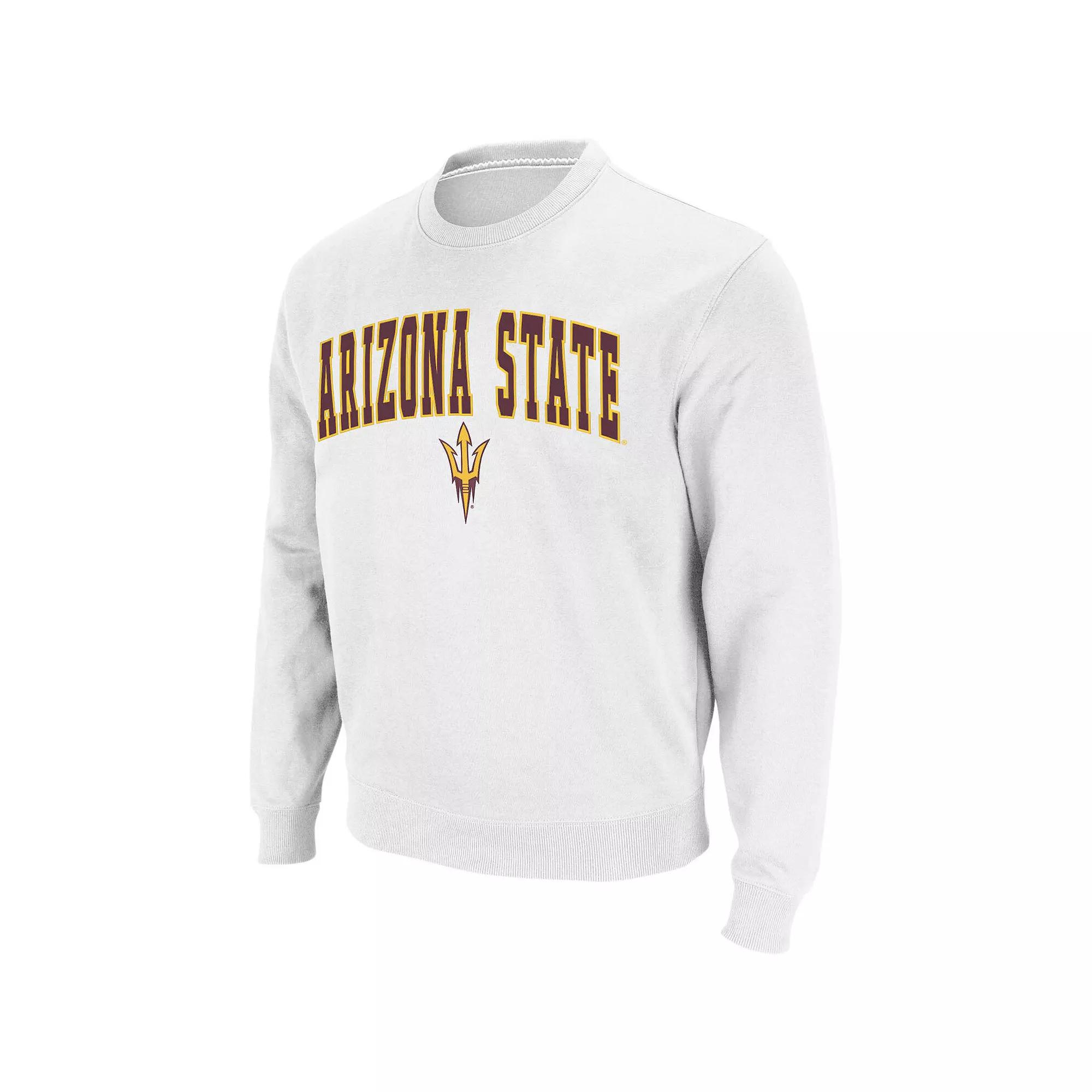 Men's Colosseum White Arizona State Sun Devils Arch & Logo Crew Neck Sweatshirt,