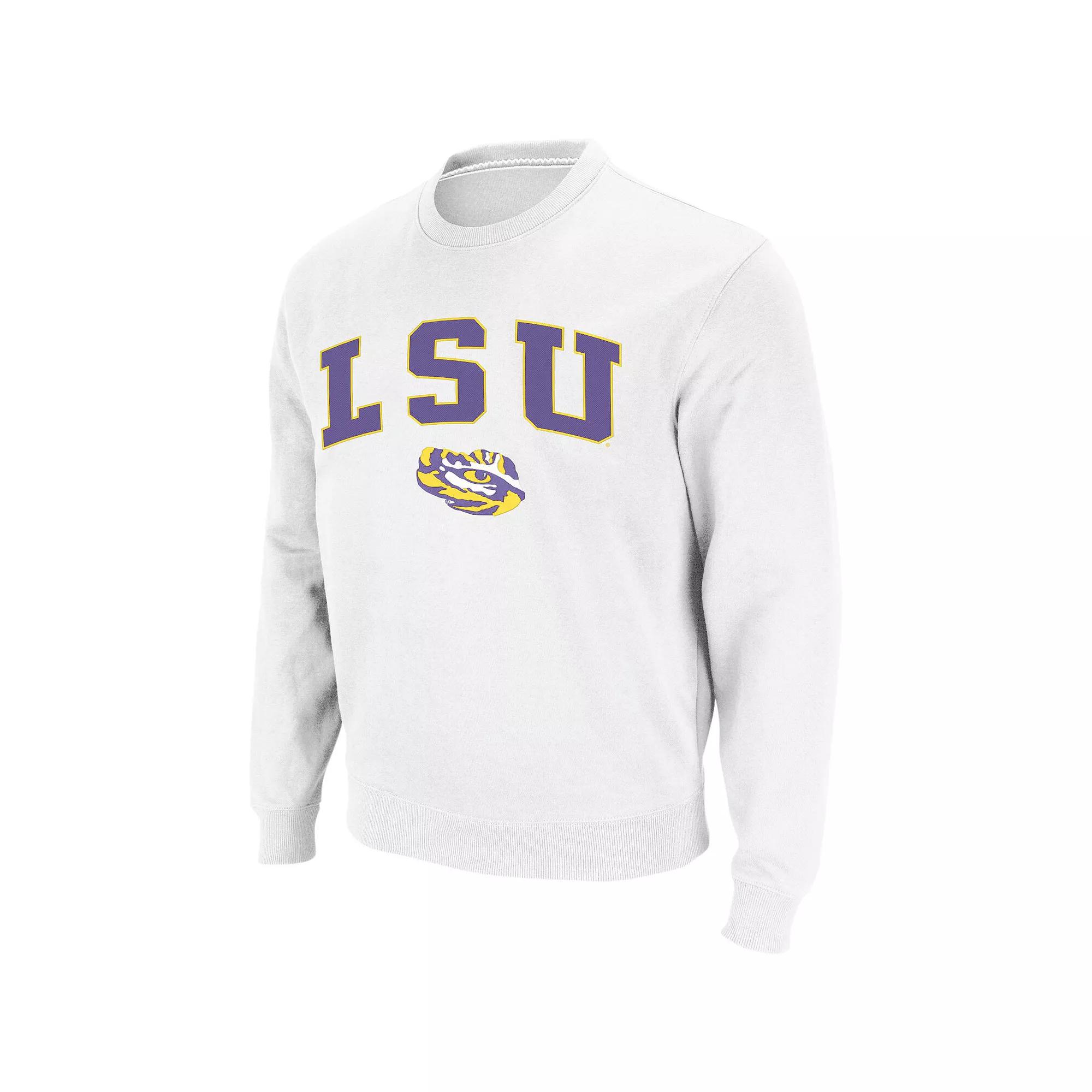 Your loyalty to the LSU Tigers will be on full display when you put on this amazing Arch and Logo sweatshirt from Colosseum.Your loyalty to the LSU Tigers will be on full display when you put on this amazing Arch and Logo sweatshirt from Colosseum.PRODUCT FEATURESMachine wash, tumble dry lowImportedImportedCrew neckLong sleeveBrand: ColosseumMaterial: 70% Cotton/30% PolyesterOfficially licensedMachine wash, tumble dry lowSizing Tip: Product runs large. We recommend ordering one size smaller than you normally wear.Brand: ColosseumLong sleeve Size: 2XL. Color: White. Gender: male. Age Group: adult.