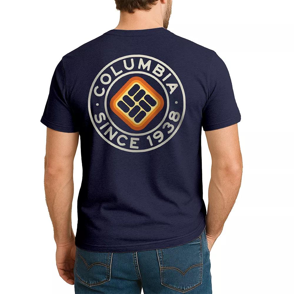 Give your casual look an adventurous upgrade with these various Mens Columbia Adventure Print Short Sleeve Graphic Tees. Give your casual look an adventurous upgrade with these various Mens Columbia Adventure Print Short Sleeve Graphic Tees. FEATURES Crewneck Short sleevesFABRIC & CARE Solid: cotton; grey: cotton, polyester Machine wash Imported Size: XXL. Color: Navy. Gender: male. Age Group: adult.