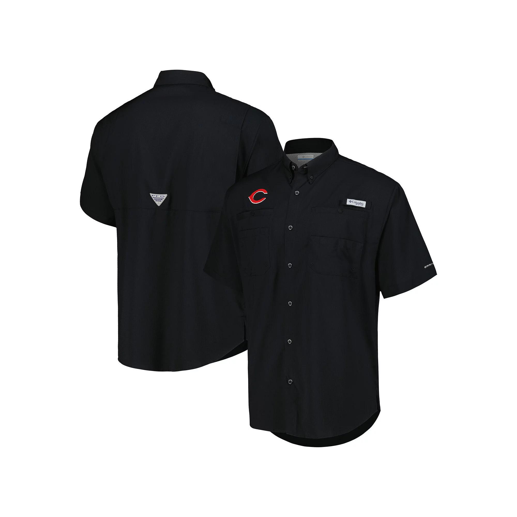 Put on the ideal shirt for your next fishing trip with this Cincinnati Reds Tamiami Button-Down Shirt from Columbia. It blocks the suns rays using Omni-Shade technology, evaporates away moisture quickly through Omni-Wick fabric and features interior mesh lining to help you stay cool. A convenient rod holder and multiple pockets on this Cincinnati Reds shirt keep your hands free to reel in each catch. Button-down collar Imported Omni-Shade technology blocks UVA and UVB rays Machine wash, tumble dry low Full-button front UPF 40 sun protection Rounded hem with side splits Short sleeve Officially licensed Two chest pockets with button closure Brand: Columbia Material: 100% Polyester Omni-Wick pulls moisture away from the body and enables perspiration to evaporate quickly, keeping you dry and comfortable Mesh-lined vent at back Rod holder loop on left chest with hook and loop closure Odor-resistant Embroidered graphics