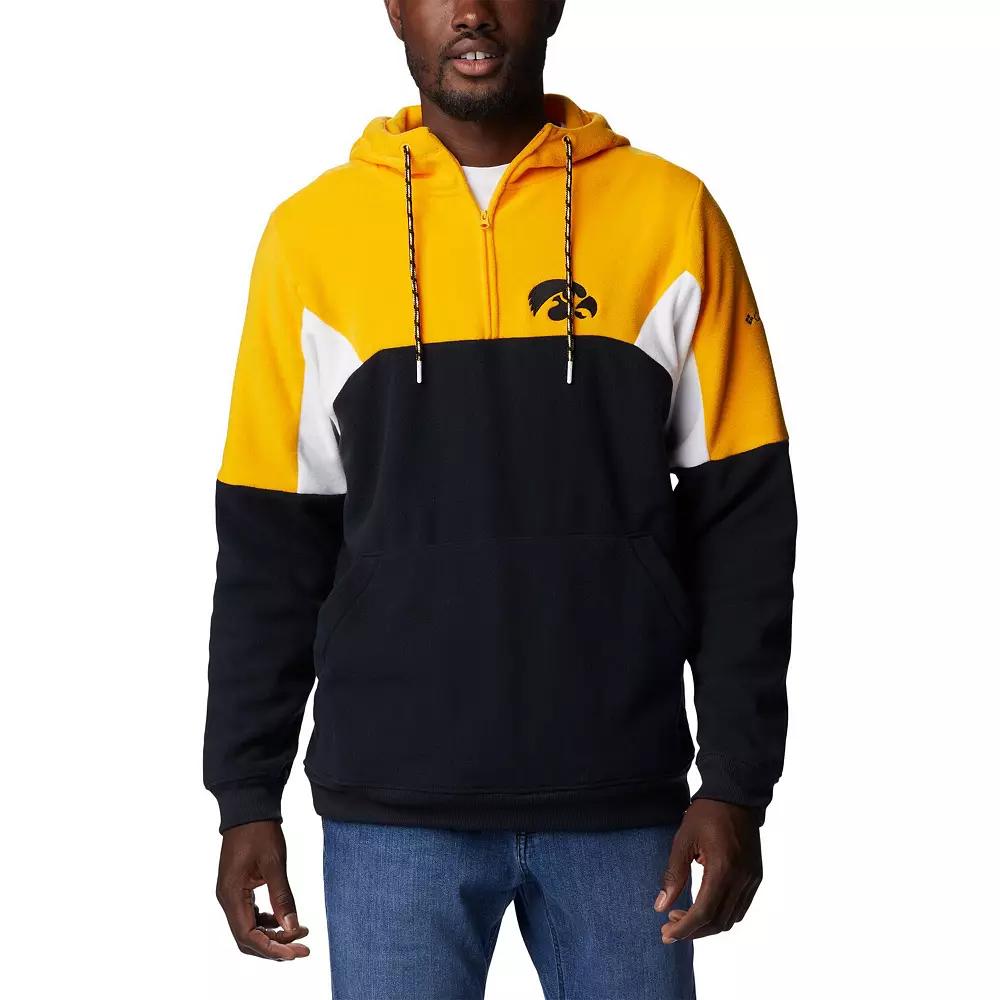 Check out this Columbia Lodge hoodie for a cozy display of your Iowa Hawkeyes fandom. Its quarter-zip closure offers an easy fit while the drawstring hood, front pouch pocket and fleece lining provide extra comfort. With embroidered Iowa Hawkeyes graphics over a colorblock design completing the look, youll be the freshest fan around.