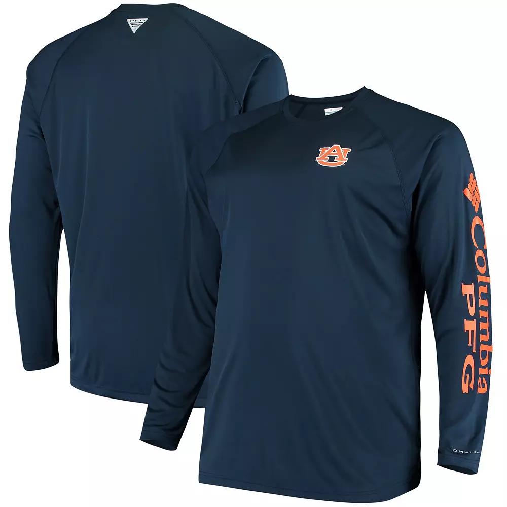 Let your Auburn Tigers pride shine when you rock this Big & Tall Terminal Tackle Long Sleeve T-Shirt. This Columbia gear is perfect for displaying your devout fandom thanks to the bold team graphics. Make this part of your game day outfit so you can cheer your team to a victory in style while protecting yourself from UVA and UVB rays thanks to the with Omni-Shade technology.Let your Auburn Tigers pride shine when you rock this Big & Tall Terminal Tackle Long Sleeve T-Shirt. This Columbia gear is perfect for displaying your devout fandom thanks to the bold team graphics. Make this part of your game day outfit so you can cheer your team to a victory in style while protecting yourself from UVA and UVB rays thanks to the with Omni-Shade technology.ImportedBrand: ColumbiaOmni-Shade technology blocks UVA and UVB raysOfficially licensedFlatlock stitchingRaglan sleevesMaterial: 100% PolyesterScreen print graphicsLong sleeveMachine wash, tumble dry lowCrew neck Size: 3XB. Color: AUB NAVY. Gender: male. Age Group: adult. Material: COTTON.