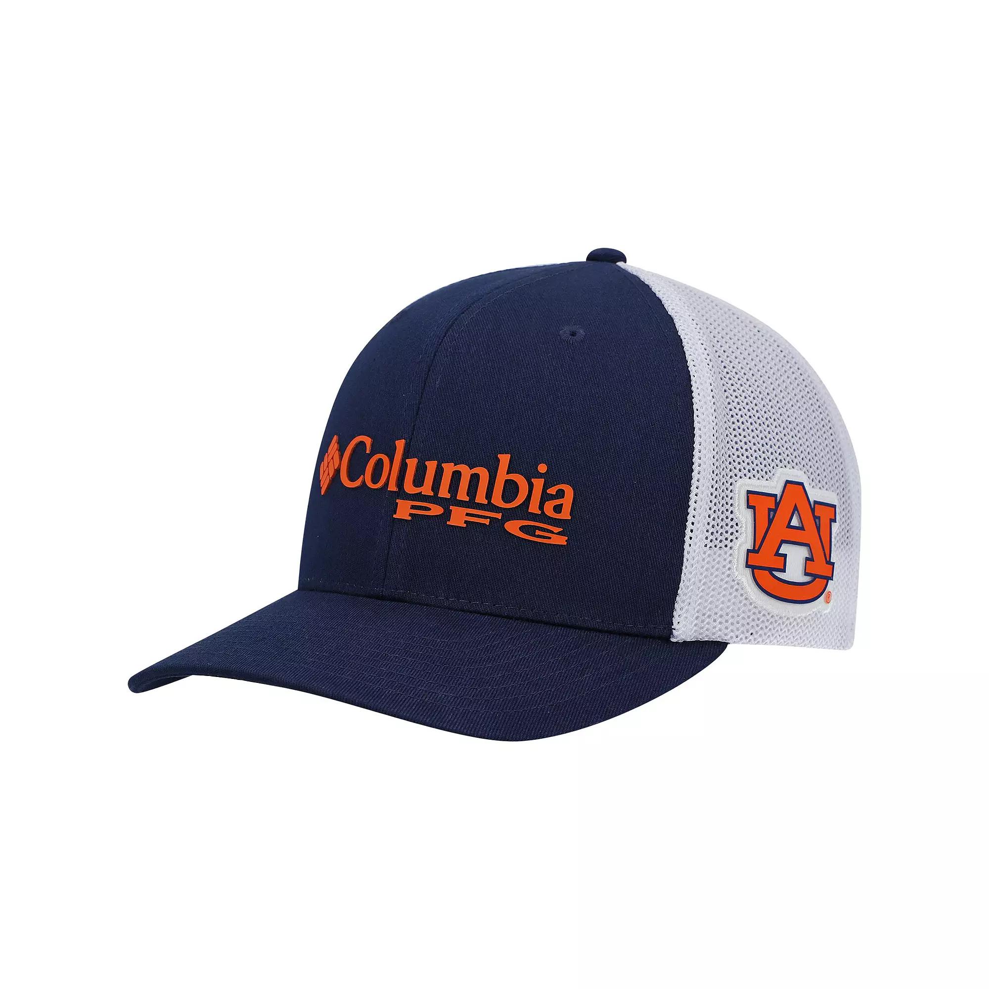 A dependable cap is a necessity for outdoorsy people like yourself. This Auburn Tigers PFG adjustable hat from Columbia will be a piece of headwear that you can rely on for years to come. Its mesh paneling is ideal for keeping cool without sacrificing coverage. And the Auburn Tigers applique on the crown features rubberized details to help your favorite team come to life.A dependable cap is a necessity for outdoorsy people like yourself. This Auburn Tigers PFG adjustable hat from Columbia will be a piece of headwear that you can rely on for years to come. Its mesh paneling is ideal for keeping cool without sacrificing coverage. And the Auburn Tigers applique on the crown features rubberized details to help your favorite team come to life.PRODUCT FEATURESMaterial: 98% Cotton/2% Elastane Shell; 95% Polyester/5% Polyurethane Stretch Mesh BackMid CrownStructured fitCurved billSnapbackOne size fits mostEmbroidered fabric applique with rubberized detailRubberized heat-sealed appliqueTwo solid front panels with eyeletsFour mesh mid and rear panelsSurface WashableOfficially licensedImportedBrand: Columbia Size: One Size. Color: Navy. Gender: male. Age Group: adult.