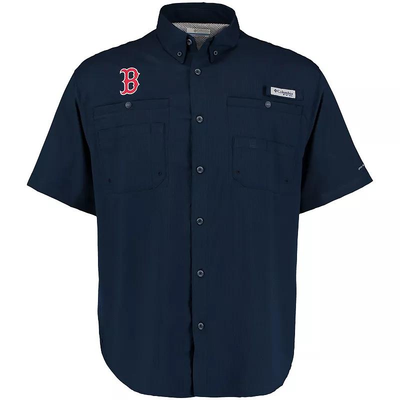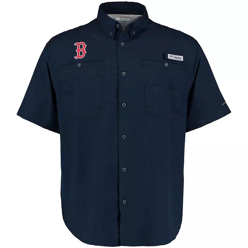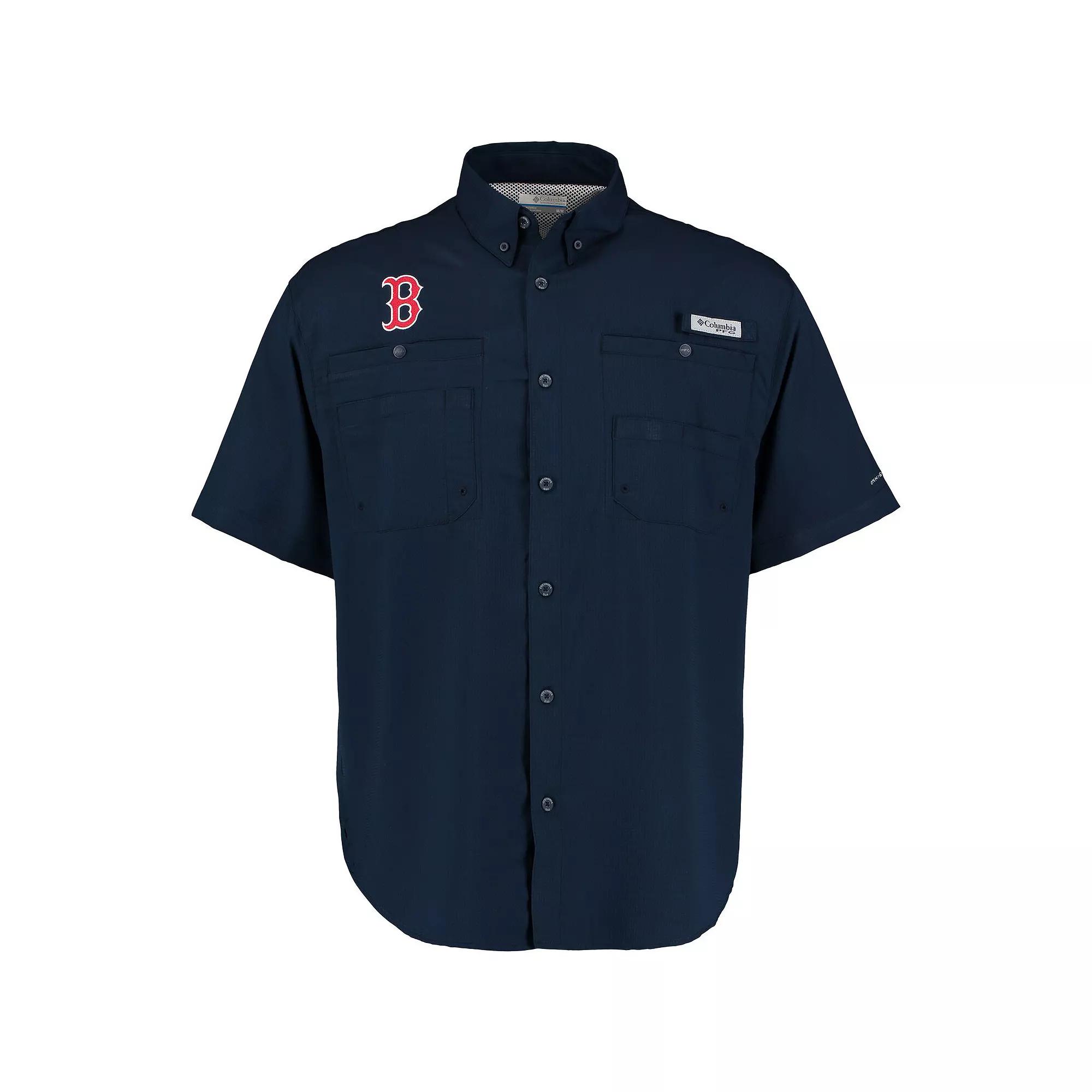 Put on the ideal shirt for your next fishing trip with this Boston Red Sox Tamiami Button-Down Shirt from Columbia. It blocks the suns rays using Omni-Shade technology, evaporates away moisture quickly through Omni-Wick fabric and features interior mesh lining to help you stay cool. A convenient rod holder and multiple pockets on this Boston Red Sox shirt keep your hands free to reel in each catch.Put on the ideal shirt for your next fishing trip with this Boston Red Sox Tamiami Button-Down Shirt from Columbia. It blocks the suns rays using Omni-Shade technology, evaporates away moisture quickly through Omni-Wick fabric and features interior mesh lining to help you stay cool. A convenient rod holder and multiple pockets on this Boston Red Sox shirt keep your hands free to reel in each catch.PRODUCT FEATURESOmni-Shade technology blocks UVA and UVB raysFull-button frontOfficially licensedRounded hem with side splitsBrand: ColumbiaRod holder loop on left chest with hook and loop closureShort sleeveMachine wash, tumble dry lowMesh-lined vent at backImportedOmni-Wick pulls moisture away from the body and enables perspiration to evaporate quickly, keeping you dry and comfortableUPF 40 sun protectionTwo chest pockets with button closureOdor-resistantQuick-dry fabricEmbroidered graphicsButton-down collarMaterial: 100% Polyester Color: RSX NAVY. Gender: male. Age Group: adult. Material: COTTON.