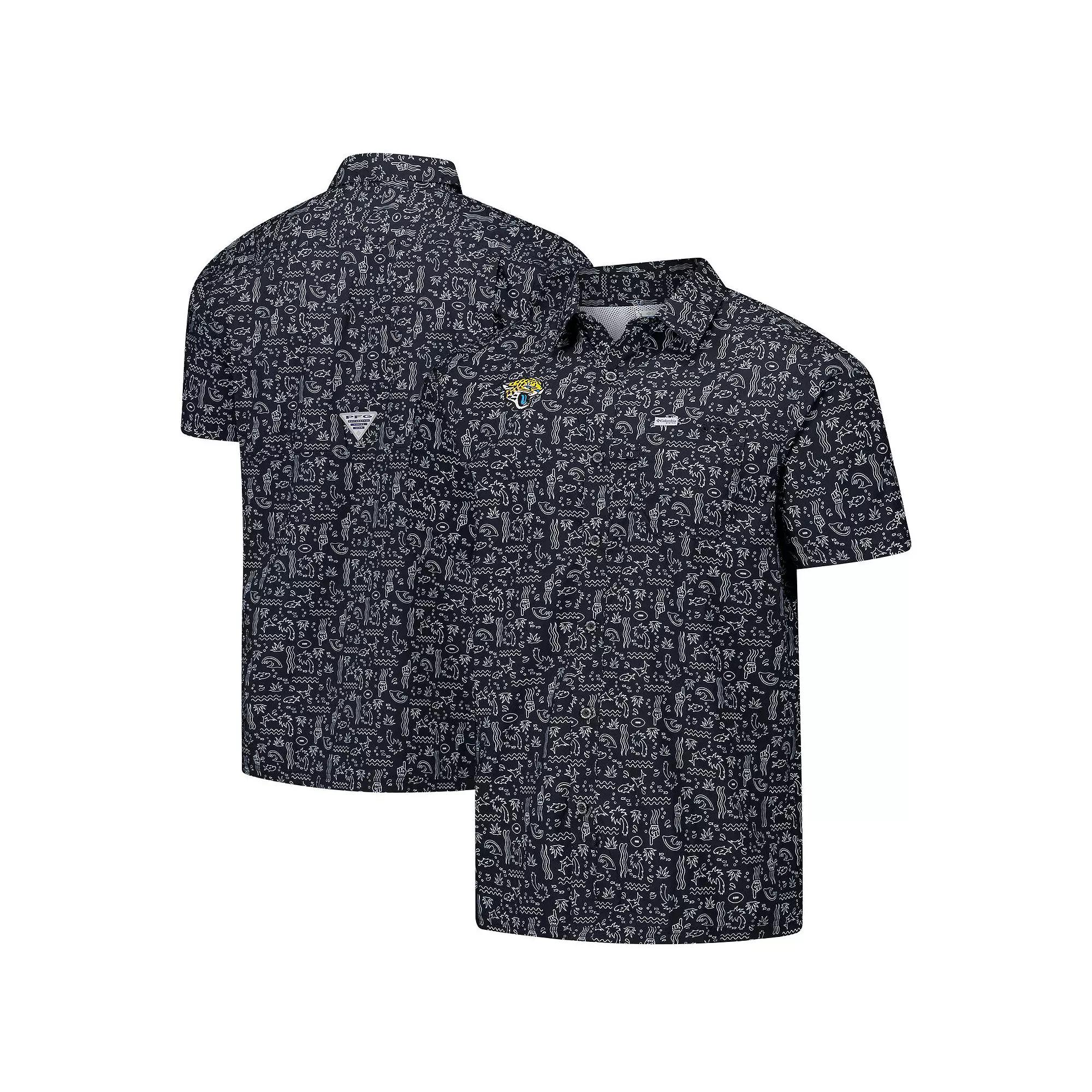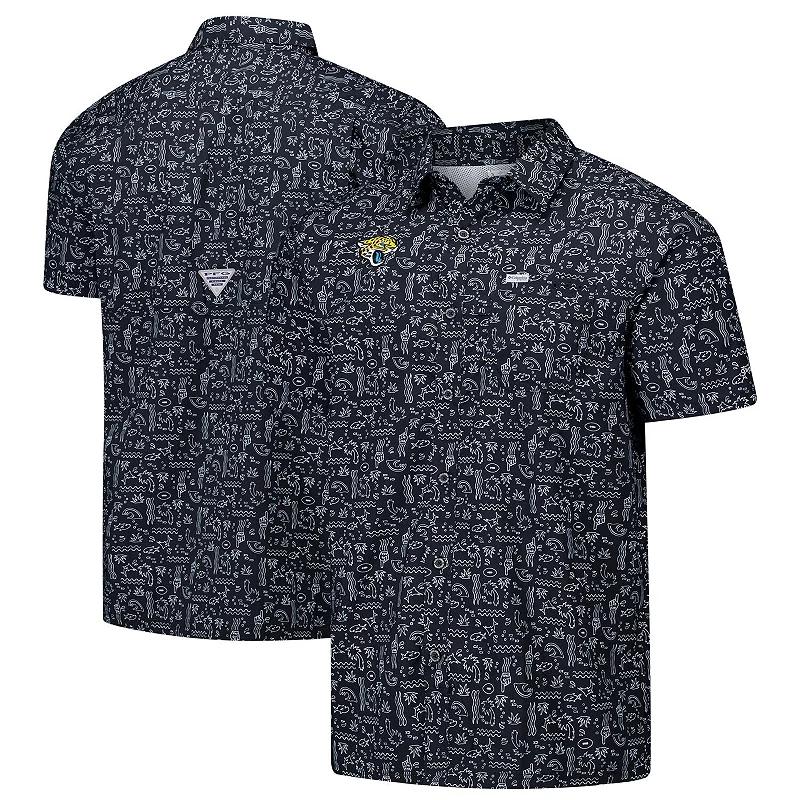 Cast your line for Jacksonville Jaguars team spirit with the Columbia PFG Super Slack Tide Full-Button Shirt. This full-button shirt boasts Columbias innovative Omni-Wick technology, ensuring you stay cool and dry even on the hottest game days. Plus, the built-in UPF 40 sun protection keeps you safe from harmful rays, making it perfect for tailgating or cheering from the stands.Cast your line for Jacksonville Jaguars team spirit with the Columbia PFG Super Slack Tide Full-Button Shirt. This full-button shirt boasts Columbias innovative Omni-Wick technology, ensuring you stay cool and dry even on the hottest game days. Plus, the built-in UPF 40 sun protection keeps you safe from harmful rays, making it perfect for tailgating or cheering from the stands.PRODUCT FEATURESShort sleeveEmbroidered team logo at left chestOmni-Wick pulls moisture away from the body and enables perspiration to evaporate quickly, keeping you dry and comfortableOfficially licensedMesh linedMaterial: 100% PolyesterHem with side splitsChest pocket with utility loop and three embroidered eyelets at the topVented in back for breathabilityBrand: Columbia PFGFull-button frontImportedOmni-Shade UPF 40 guards against skin damage using tight fabric construction and modified fibers to block UVA/UVB rays, so you stay protected in the sunMachine wash, tumble dry lowSunglasses cleaning patch inside bottom placket Color: Black. Gender: male. Age Group: adult. Material: COTTON.