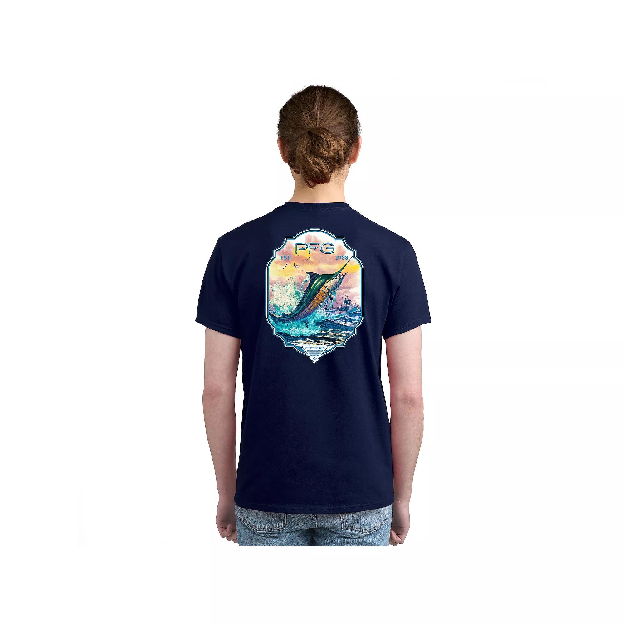 Expand your everyday wardrobe with this Mens Columbia PFG Short Sleeve Graphic Tee. Expand your everyday wardrobe with this Mens Columbia PFG Short Sleeve Graphic Tee. FEATURES Crewneck Short sleeveFABRIC & CARE Solid Color: Cotton ; Heather Colors: Cotton/Polyester Machine wash Imported Color: Black 1. Gender: male. Age Group: adult.