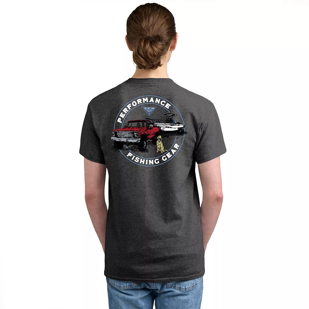 Whether youre out fishing or just running errands, these casual and cool Mens Columbia PFG Print Short Sleeve Graphic Tees are the perfect pick. Whether youre out fishing or just running errands, these casual and cool Mens Columbia PFG Print Short Sleeve Graphic Tees are the perfect pick. FEATURES Crewneck Short sleevesFABRIC & CARE Solid: cotton; Grey: cotton, polyester Machine wash Imported Size: XL. Color: Light Grey. Gender: male. Age Group: adult.