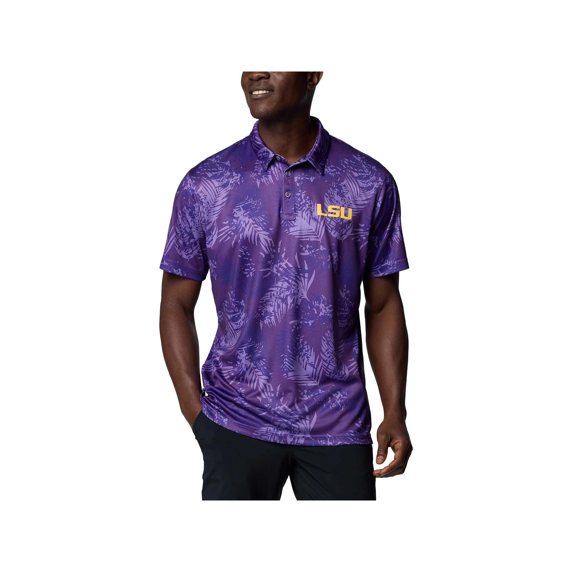 Stay cool and show your LSU Tigers pride with the Columbia PFG Super Terminal Tackle Omni-Shade Bangalows Polo. This polo is designed with Omni-Shield technology to resist stains and Omni-Shade technology to block harmful UVA and UVB rays, making it perfect for long days spent cheering on the Tigers. The sublimated floral pattern adds a touch of Southern charm, while the team logo on the left chest proudly displays your LSU pride. This polo is a must-have for any LSU fan looking to represent their Tigers with style and sun protection both on and off the field.Stay cool and show your LSU Tigers pride with the Columbia PFG Super Terminal Tackle Omni-Shade Bangalows Polo. This polo is designed with Omni-Shield technology to resist stains and Omni-Shade technology to block harmful UVA and UVB rays, making it perfect for long days spent cheering on the Tigers. The sublimated floral pattern adds a touch of Southern charm, while the team logo on the left chest proudly displays your LSU pride. This polo is a must-have for any LSU fan looking to represent their Tigers with style and sun protection both on and off the field.PRODUCT FEATURESShort sleeveOfficially licensedMaterial: 100% PolyesterSublimated floral patternImportedTeam logo printed on left chestThe Skin Cancer Foundation recommends this quick-drying fabric as an effective UV protectant only for covered areas.Three-button placketOmni-Shade technology blocks UVA and UVB raysBroad spectrum UV protectionMachine wash, tumble dry lowOmni-Shield technology resists the absorption of liquids to prevent stainingBrand: Columbia Color: Purple. Gender: male. Age Group: adult. Material: Cotton.