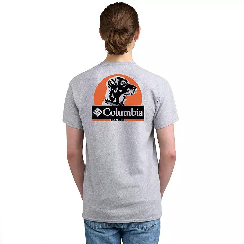 Expand your everyday wardrobe with this mens Columbia graphic tee. Click on this MENS GUIDE to find the perfect fit and more! Expand your everyday wardrobe with this mens Columbia graphic tee. Click on this MENS GUIDE to find the perfect fit and more! FEATURES Crewneck Short sleevesFIT & SIZING Classic fitFABRIC & CARE Light Grey: 90% cotton, 10% polyester, Dark Grey: 50% cotton 50% polyester, Solid colors: cotton Machine wash Imported Size: XL. Color: Gray Dog. Gender: male. Age Group: adult.