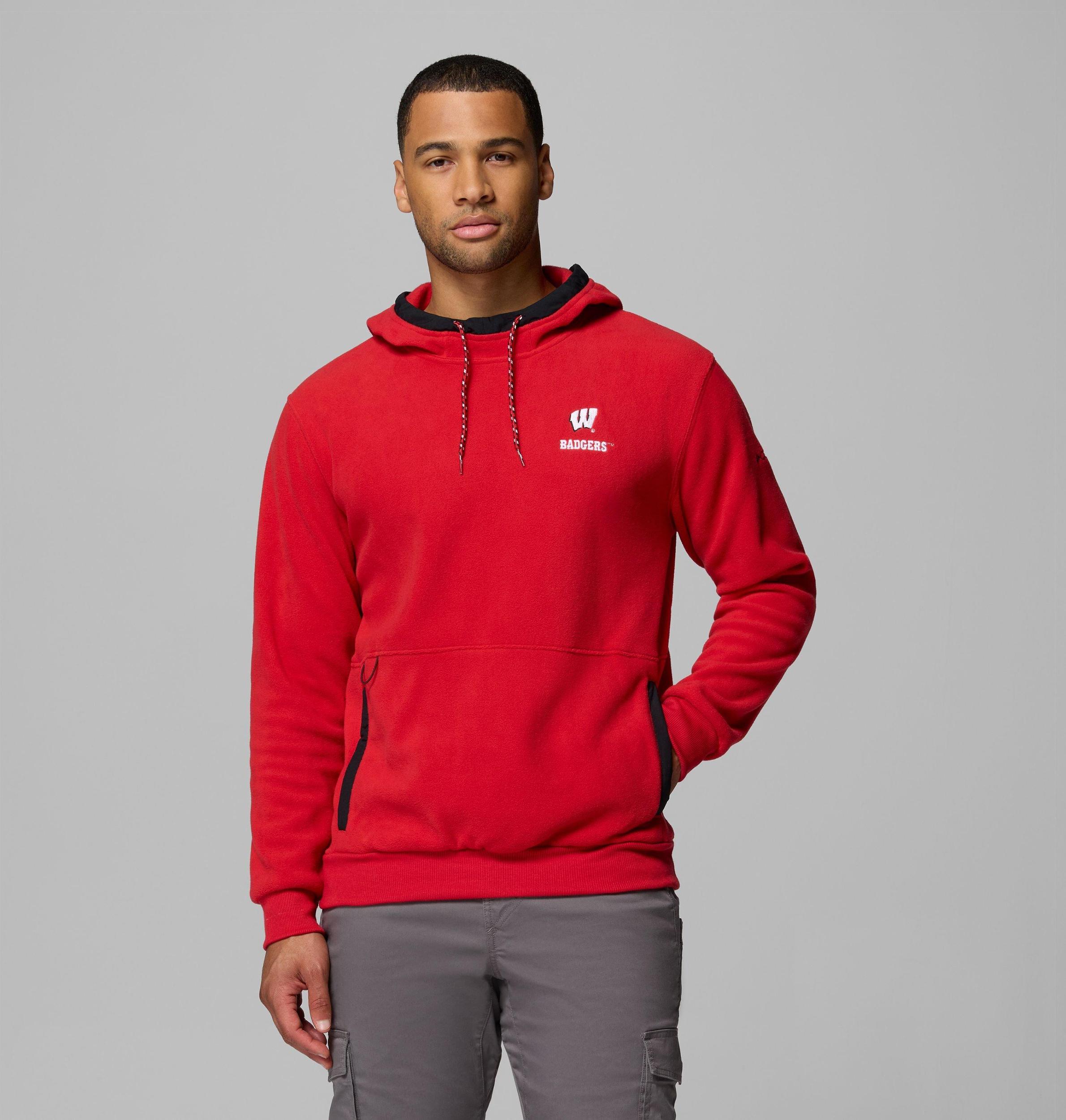 Stay warm while cheering on the Wisconsin Badgers with this Columbia Flanker Fleece Pullover Hoodie. This midweight hoodie features a scuba hood with an adjustable drawcord, providing versatile coverage from the elements as you cheer on the Badgers. The front pouch pocket provides both hands-free storage and an extra layer of comfort.Stay warm while cheering on the Wisconsin Badgers with this Columbia Flanker Fleece Pullover Hoodie. This midweight hoodie features a scuba hood with an adjustable drawcord, providing versatile coverage from the elements as you cheer on the Badgers. The front pouch pocket provides both hands-free storage and an extra layer of comfort.PRODUCT FEATURESHoodedEmbroidered LogoOfficially licensedMidweight hoodie suitable for moderate temperaturesLong sleeveImportedMaterial: 100% Polyester - Body; 100% Nylon - OverlayBrand: ColumbiaPulloverEmbroidered team graphics on left upper chestFront pouch pocket for hands-free storage and extra layer of comfortMachine wash, tumble dry lowUtility loopScuba hood with an adjustable drawcord Gender: male. Age Group: adult.