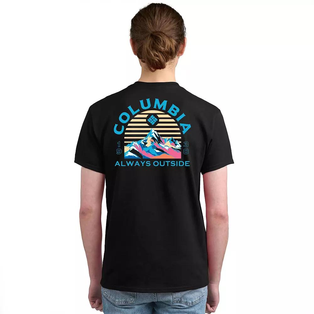 Expand your everyday wardrobe with this Mens Columbia Short Sleeve Graphic Tee. Expand your everyday wardrobe with this Mens Columbia Short Sleeve Graphic Tee. FEATURES Crewneck Short sleeveFABRIC & CARE Solid Color: Cotton ; Heather Colors: Cotton/Polyester Machine wash Imported Color: Black Always Outside. Gender: male. Age Group: adult.