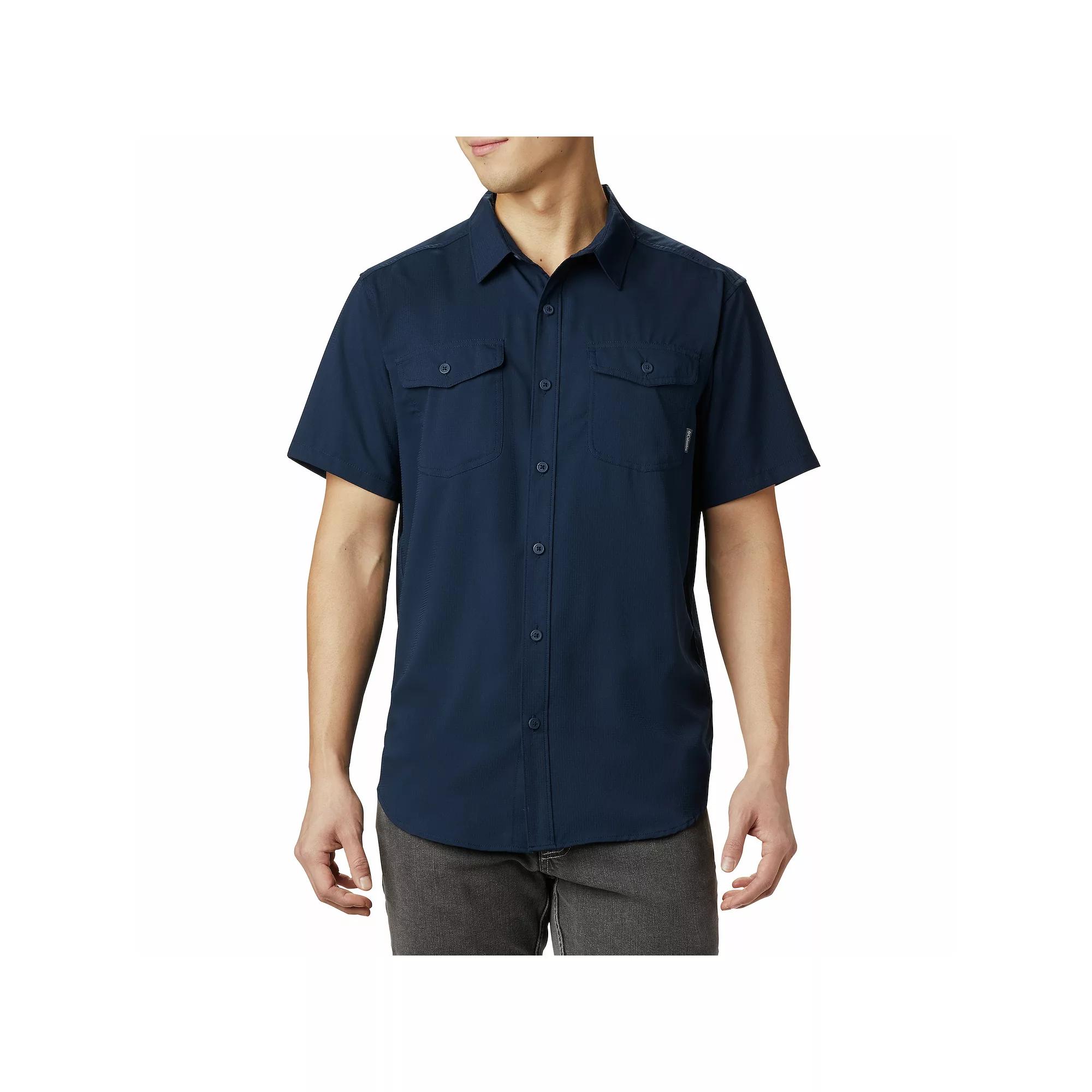 Hit the trail in style and comfort with this mens Columbia button-down shirt.Watch the product video here.Omni-Wick and quick-dry moisture-wicking fabricOmni-Shade UPF-40 sun-blocking protectionAnti-microbial treatmentVentedMulti-functional pocketsButton front2-pocketShort sleevesFIT & SIZINGRegular fitFABRIC & CAREPolyesterMachine washImported Color: Brt Blue. Gender: male. Age Group: adult. Pattern: Solid.