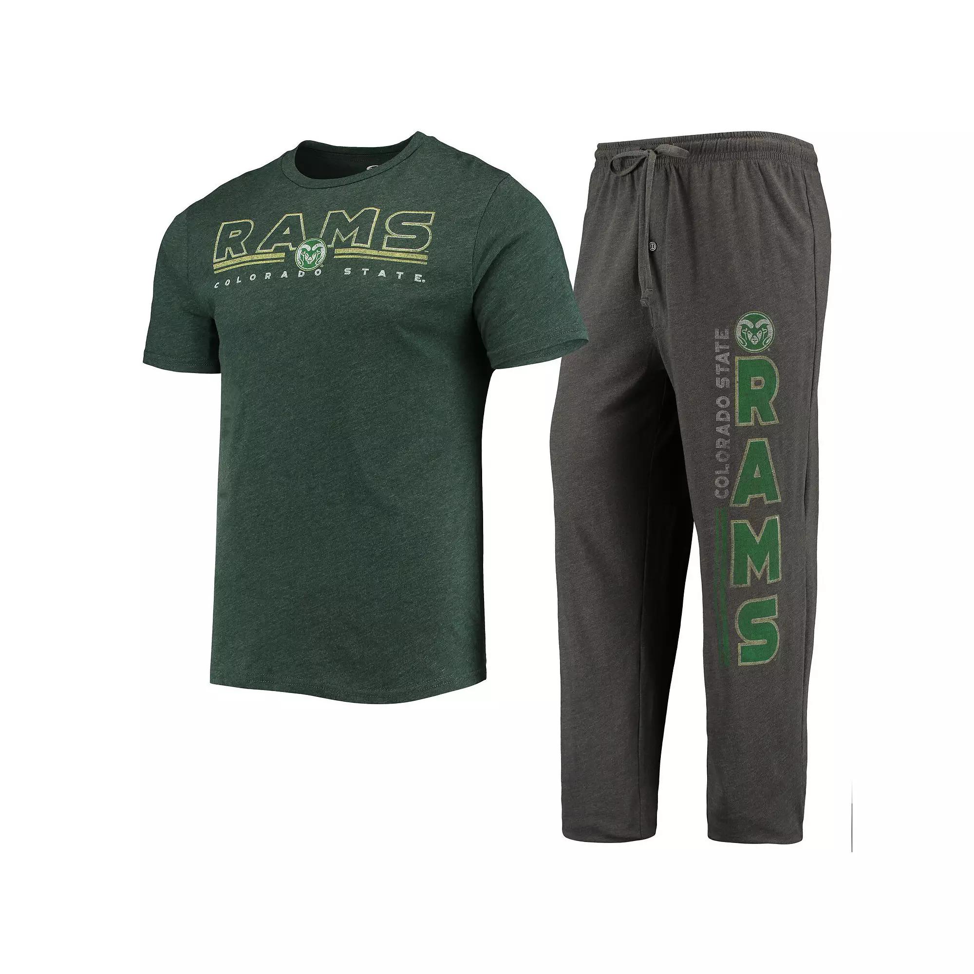 Hit the hay comfortably in this Colorado State Rams Meter T-shirt and pants sleep set from Concepts Sport. It features printed Colorado State Rams graphics with a vintage look. An adjustable waistband also lets you customize the fit for added comfort.Hit the hay comfortably in this Colorado State Rams Meter T-shirt and pants sleep set from Concepts Sport. It features printed Colorado State Rams graphics with a vintage look. An adjustable waistband also lets you customize the fit for added comfort.Brand: Concepts SportCrew neckDistressed screen print graphicsElastic waistband with drawstringImportedInseam for size M measures approx. 30.5Machine wash, tumble dry lowMaterial: 60% Cotton/40% PolyesterOfficially licensedOne-button flySet includes T-shirt and one pair of pantsShort sleeveTagless CollarTwo side slip pockets Color: Charcoal. Gender: male. Age Group: adult.