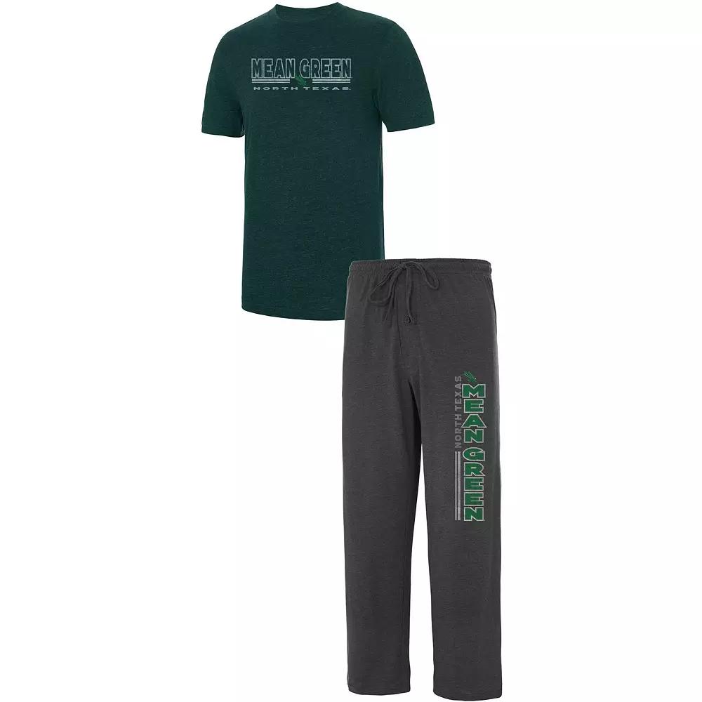 Hit the hay comfortably in this North Texas Mean Green Meter T-shirt and pants sleep set from Concepts Sport. It features printed North Texas Mean Green graphics with a vintage look. An adjustable waistband also lets you customize the fit for added comfort.Hit the hay comfortably in this North Texas Mean Green Meter T-shirt and pants sleep set from Concepts Sport. It features printed North Texas Mean Green graphics with a vintage look. An adjustable waistband also lets you customize the fit for added comfort.Brand: Concepts SportCrew neckDistressed screen print graphicsElastic waistband with drawstringImportedMachine wash, tumble dry lowOfficially licensedOne-button flySet includes T-shirt and one pair of pantsShort sleeve Color: Charcoal. Gender: male. Age Group: adult.