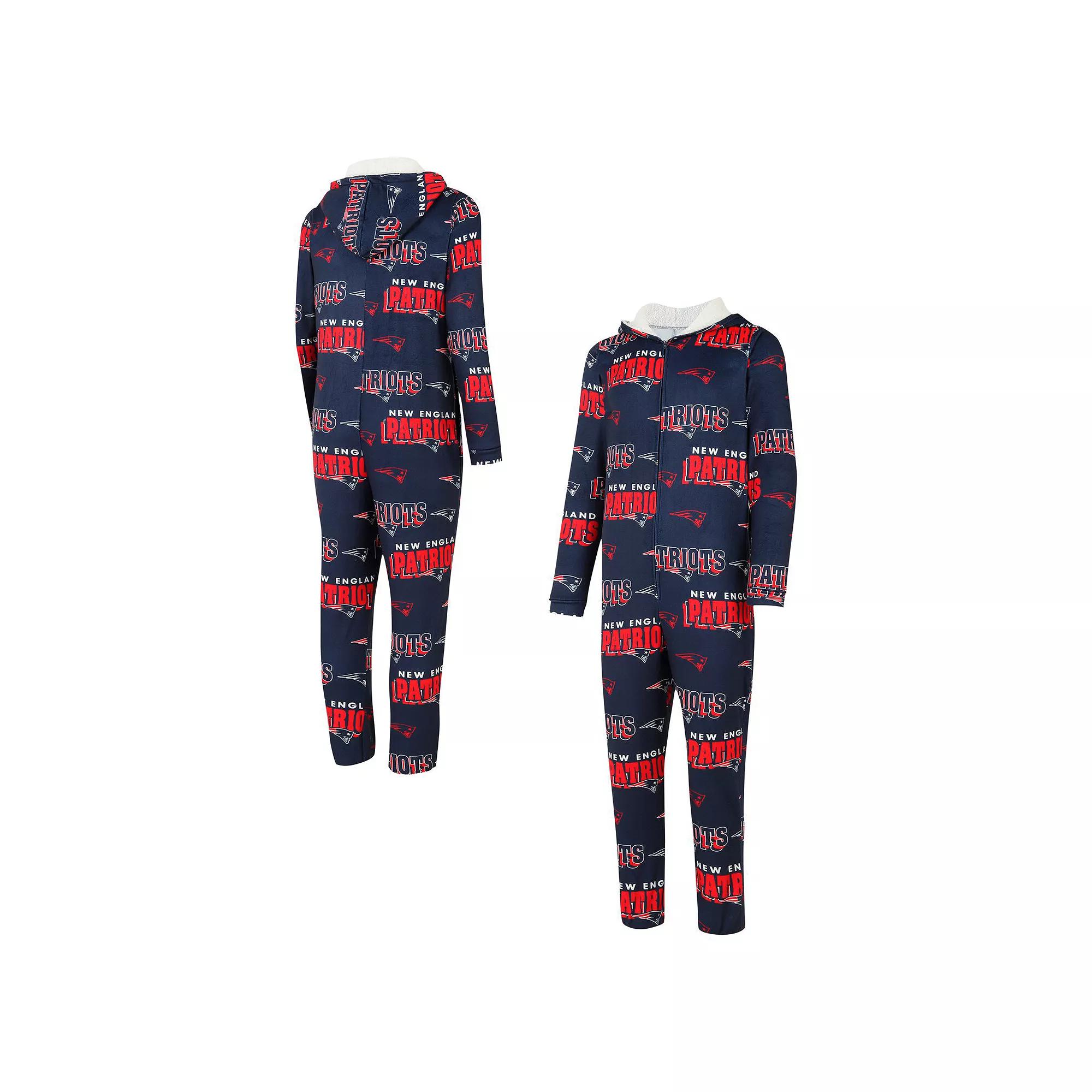 Stay warm and cozy while repping your New England Patriots with the Concepts Sport Roadway All Over Microfleece Full-Zip Union Suit. Made from an ultra-soft microfleece blend, this union suit features allover team graphics sublimated into the fabric for a look thats both stylish and cozy. The Sherpa-lined hood adds extra warmth, making it perfect for chilly nights spent cheering on the New England Patriots.Stay warm and cozy while repping your New England Patriots with the Concepts Sport Roadway All Over Microfleece Full-Zip Union Suit. Made from an ultra-soft microfleece blend, this union suit features allover team graphics sublimated into the fabric for a look thats both stylish and cozy. The Sherpa-lined hood adds extra warmth, making it perfect for chilly nights spent cheering on the New England Patriots.PRODUCT FEATURESInseam on size M measures approx. 32Officially licensedMaterial: 95% Polyester/5% Spandex - Body; 100% Polyester - Hood LiningAllover team graphics sublimated in soft fabricMachine wash, tumble dry lowFull-zipElastic cuffsSherpa-lined hoodBrand: Concepts SportTwo side pocketsImported Size: 3XL. Color: Navy. Gender: male. Age Group: adult. Material: Cotton.