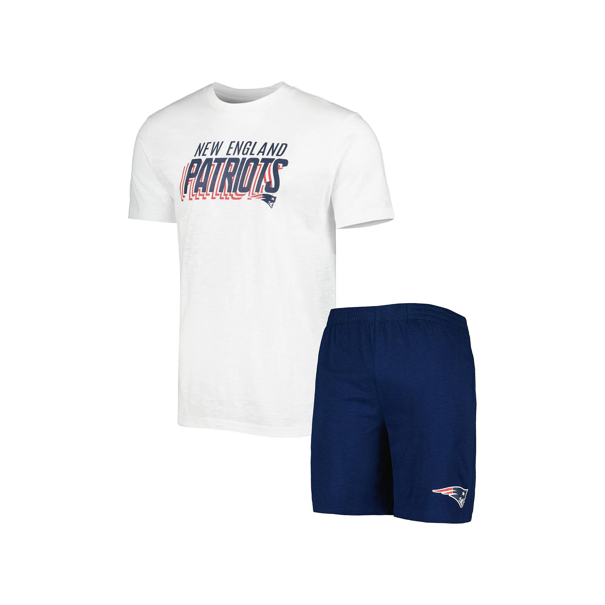 Level up your nighttime gear with this cozy Downfield Sleep set by Concepts Sport. It includes a T-shirt and shorts decorated in timeless New England Patriots graphics. The relaxed construction of the tee and elastic waistband on the shorts allow for an all-around comfortable feel.Level up your nighttime gear with this cozy Downfield Sleep set by Concepts Sport. It includes a T-shirt and shorts decorated in timeless New England Patriots graphics. The relaxed construction of the tee and elastic waistband on the shorts allow for an all-around comfortable feel.PRODUCT FEATURESShort sleeveSpace dye fabricImportedSide pocketsBrand: Concepts SportOfficially licensedMaterial: 60% Cotton/40% PolyesterShort sleeveInseam on size M measures approx. 8Elastic waistbandSet includes T-shirt and shortsCrew neckScreen print graphicsMachine wash, tumble dry low Color: Navy. Gender: male. Age Group: adult.
